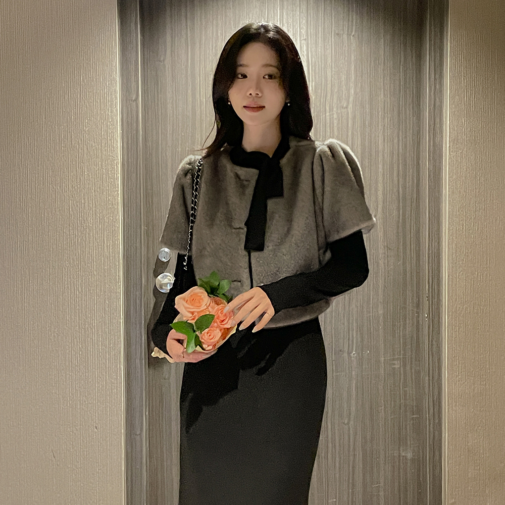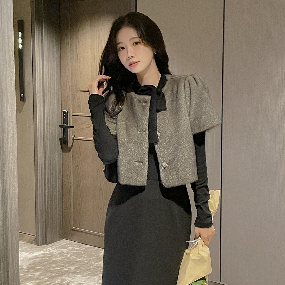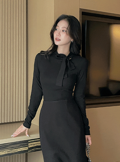 蝴蝶结领口 겉기모 弹力 T恤衫