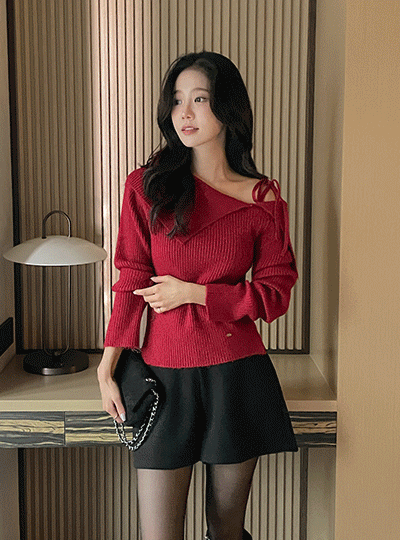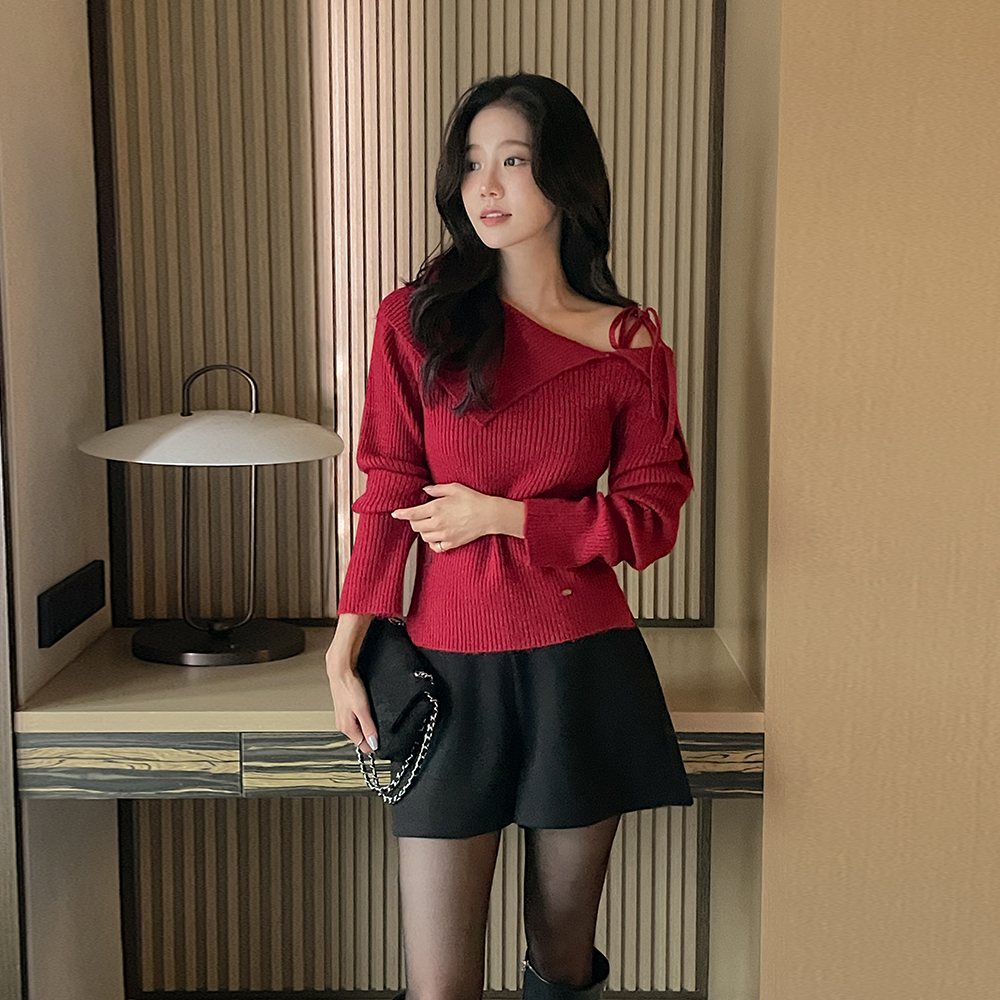 Merry 羊毛 打结 언발숄더 条绒 针织衫