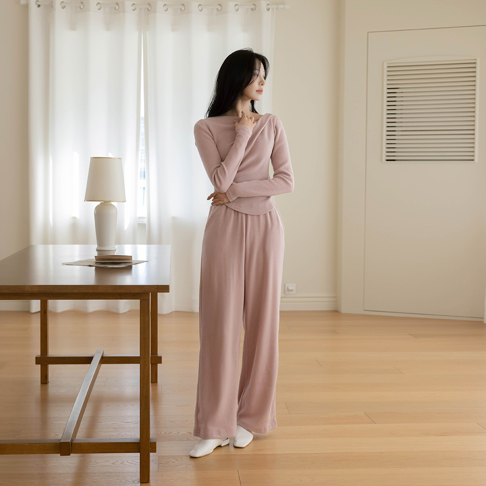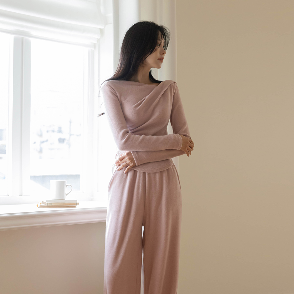 柔软的 겉기모 悬垂式 T恤衫&裤子 SET
