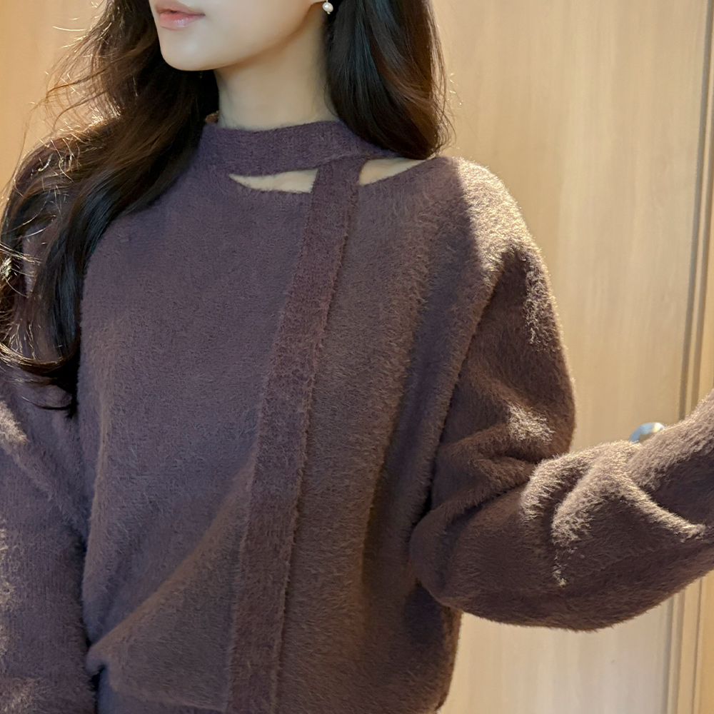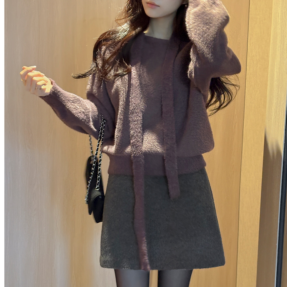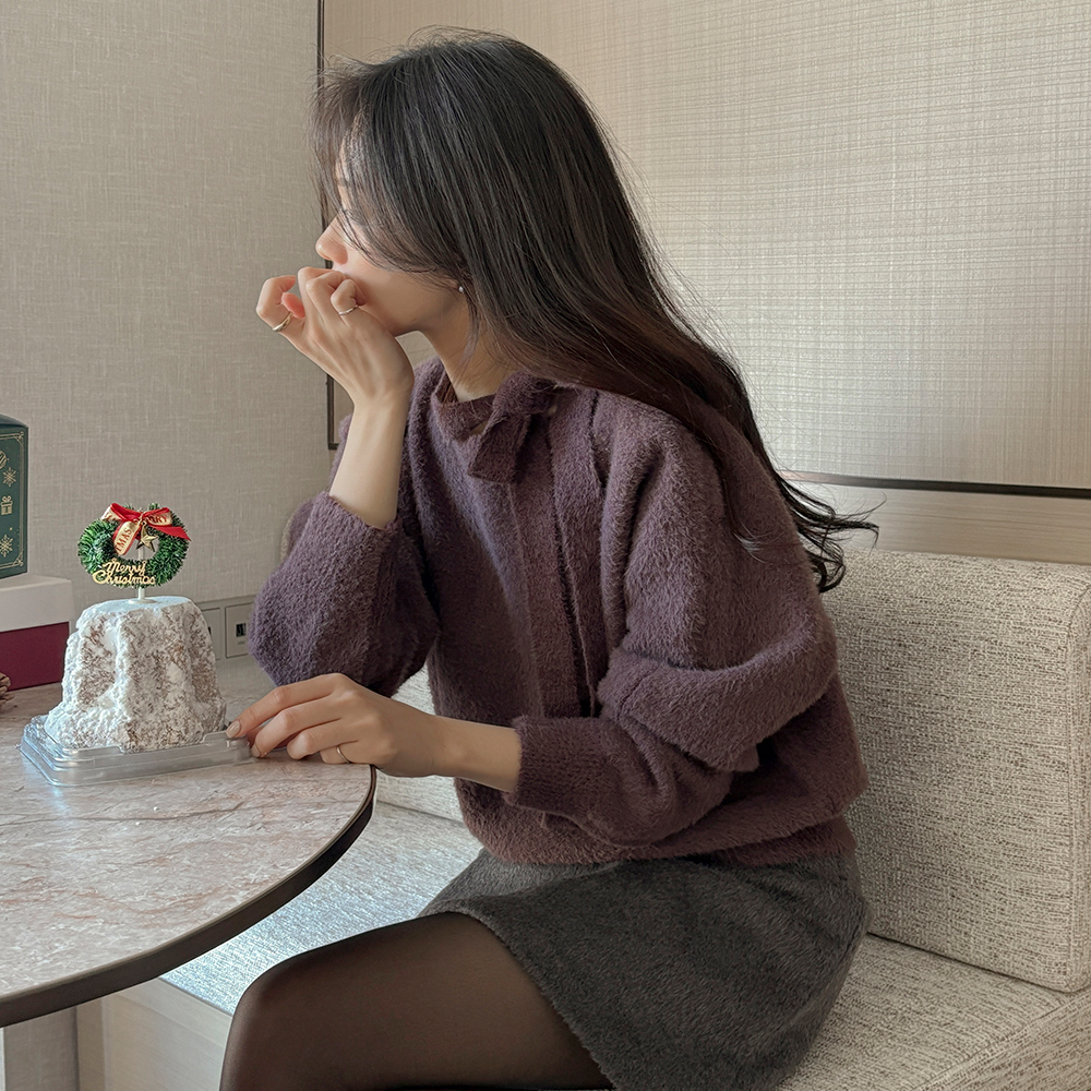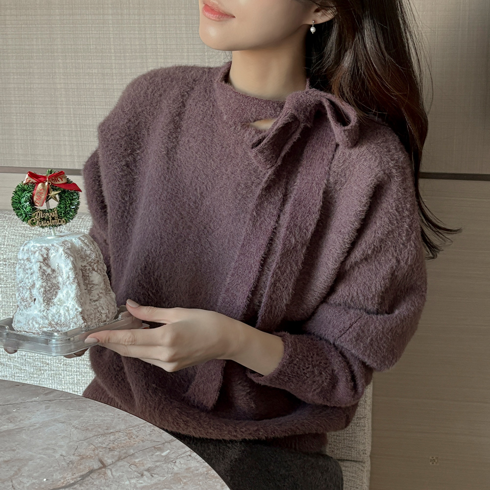 柔丝 领带 船形领 柔软的 针织衫