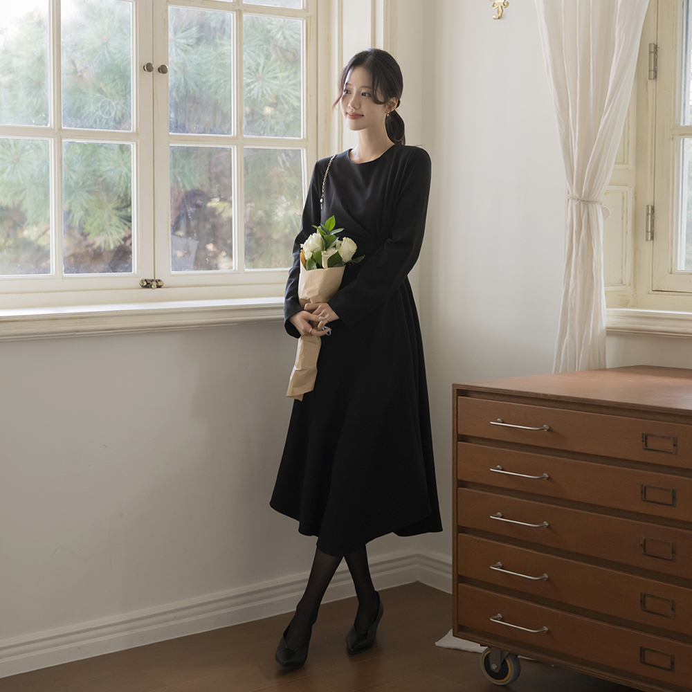 安娜 情调 褶皱 A字型 连衣裙