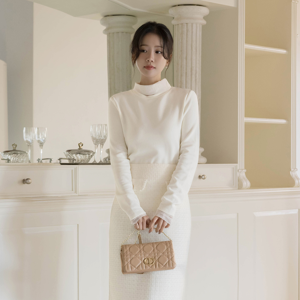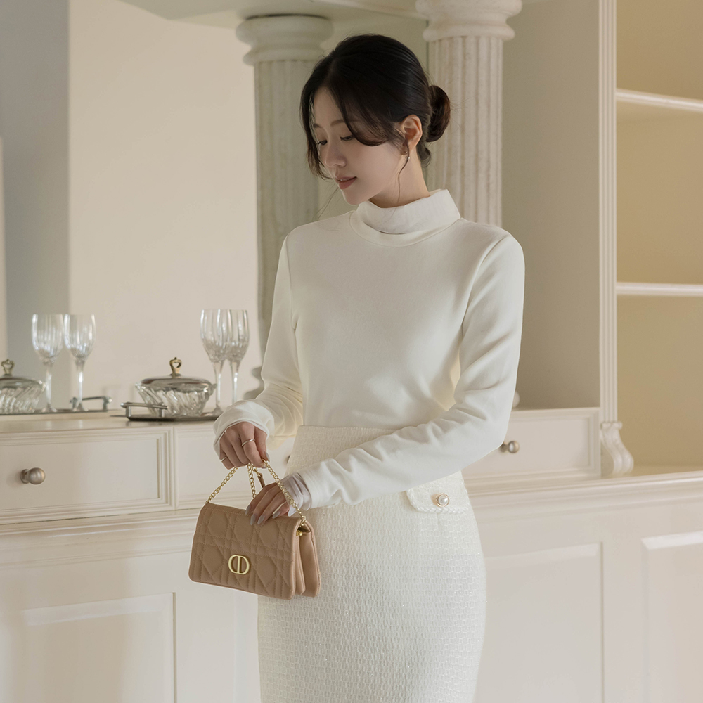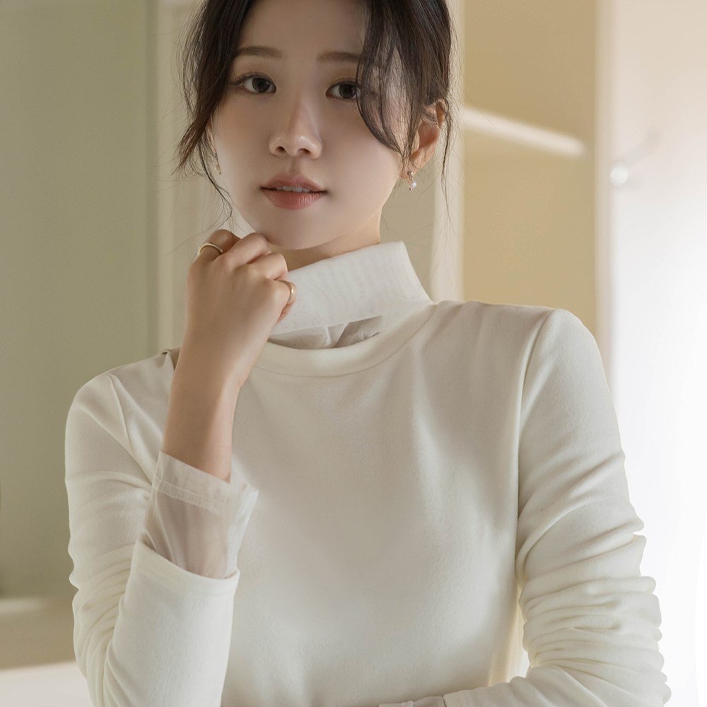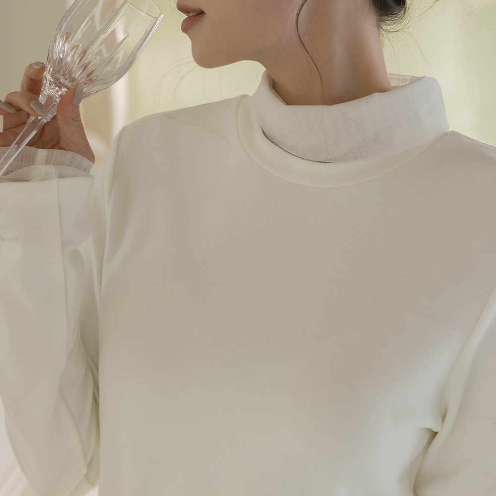透视 分层 稍厚的 拉绒 高领 T恤衫