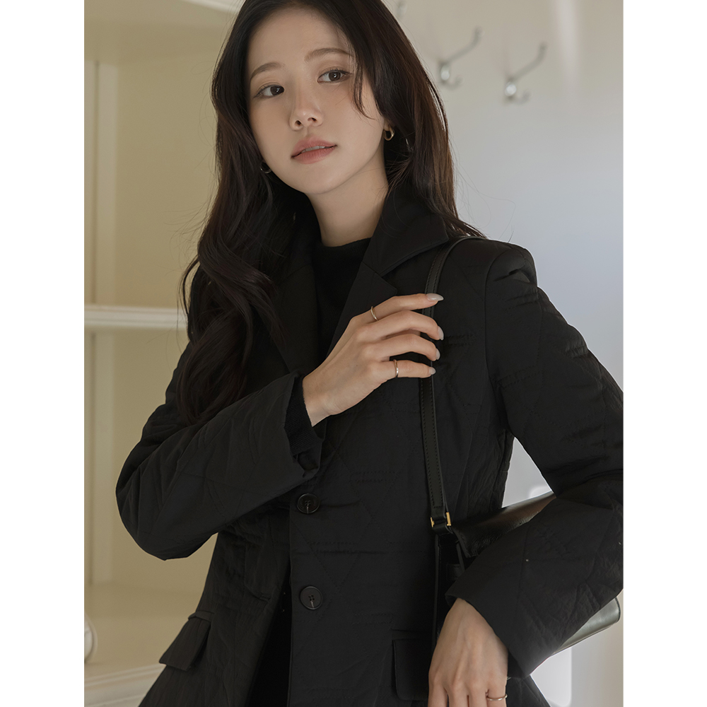 女性化的 翻领 绗缝 荷叶边 羽绒服