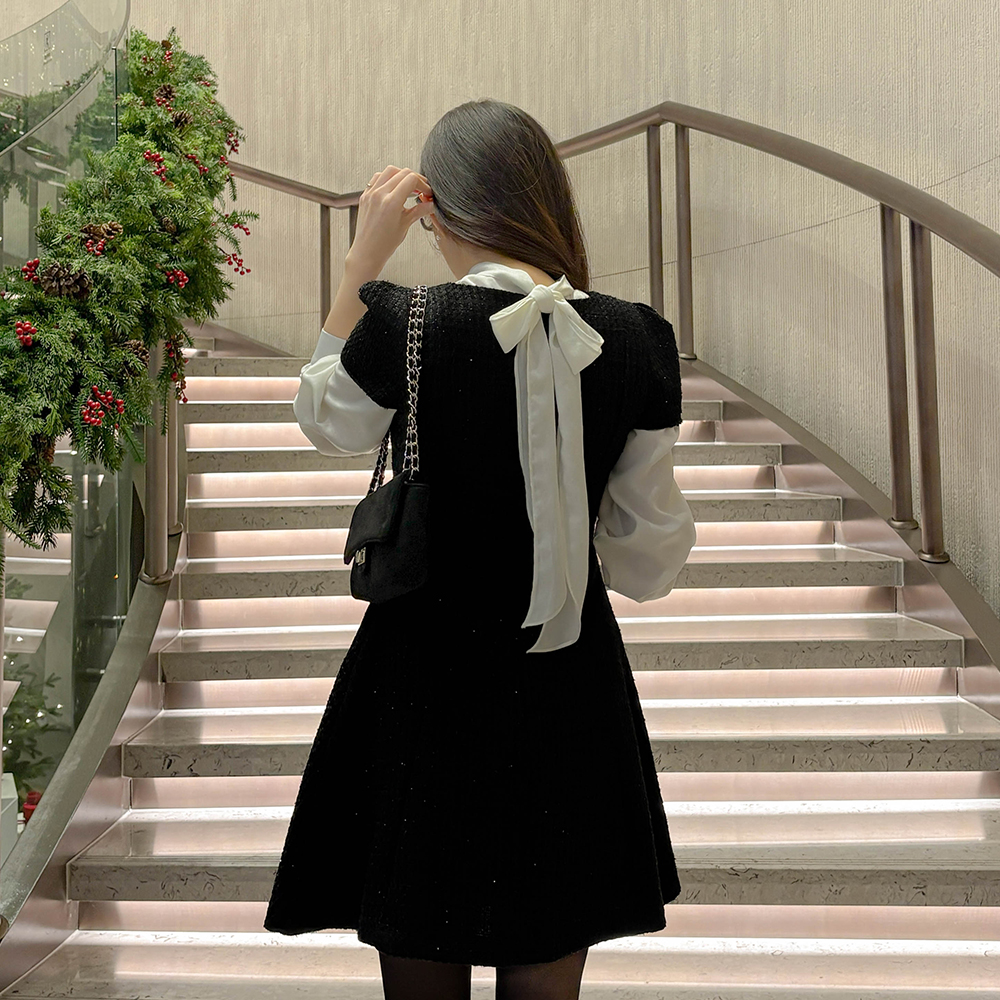 闪亮 短袖 粗呢 A字型 迷你 连衣裙