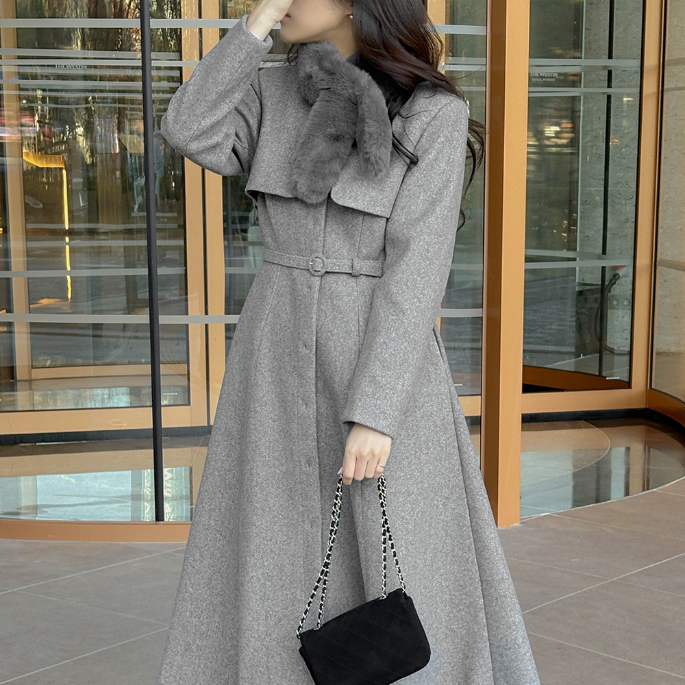 女性化的 翅膀 修身 长款大衣(+腰带)