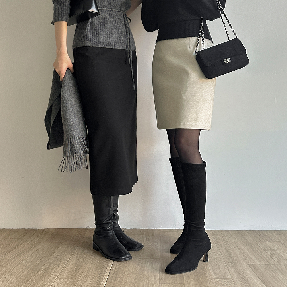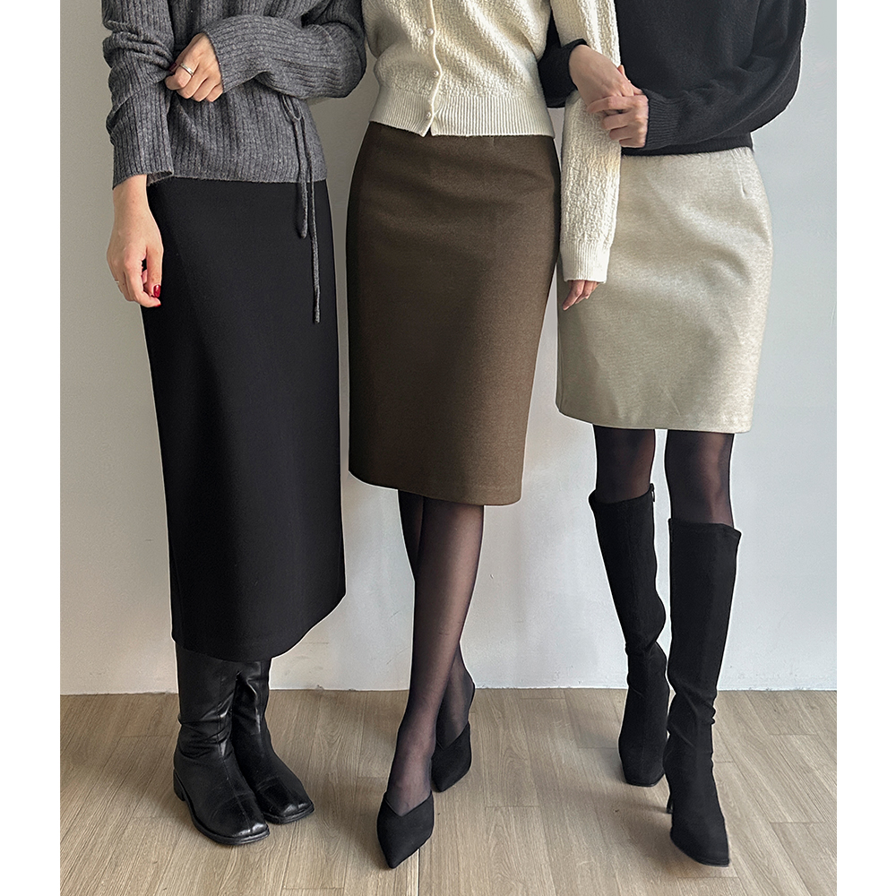 柔软的 羊毛 H字型 裙子 (迷你/中跟/长款ver)