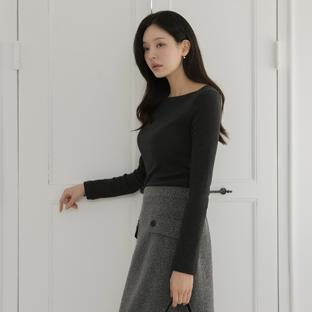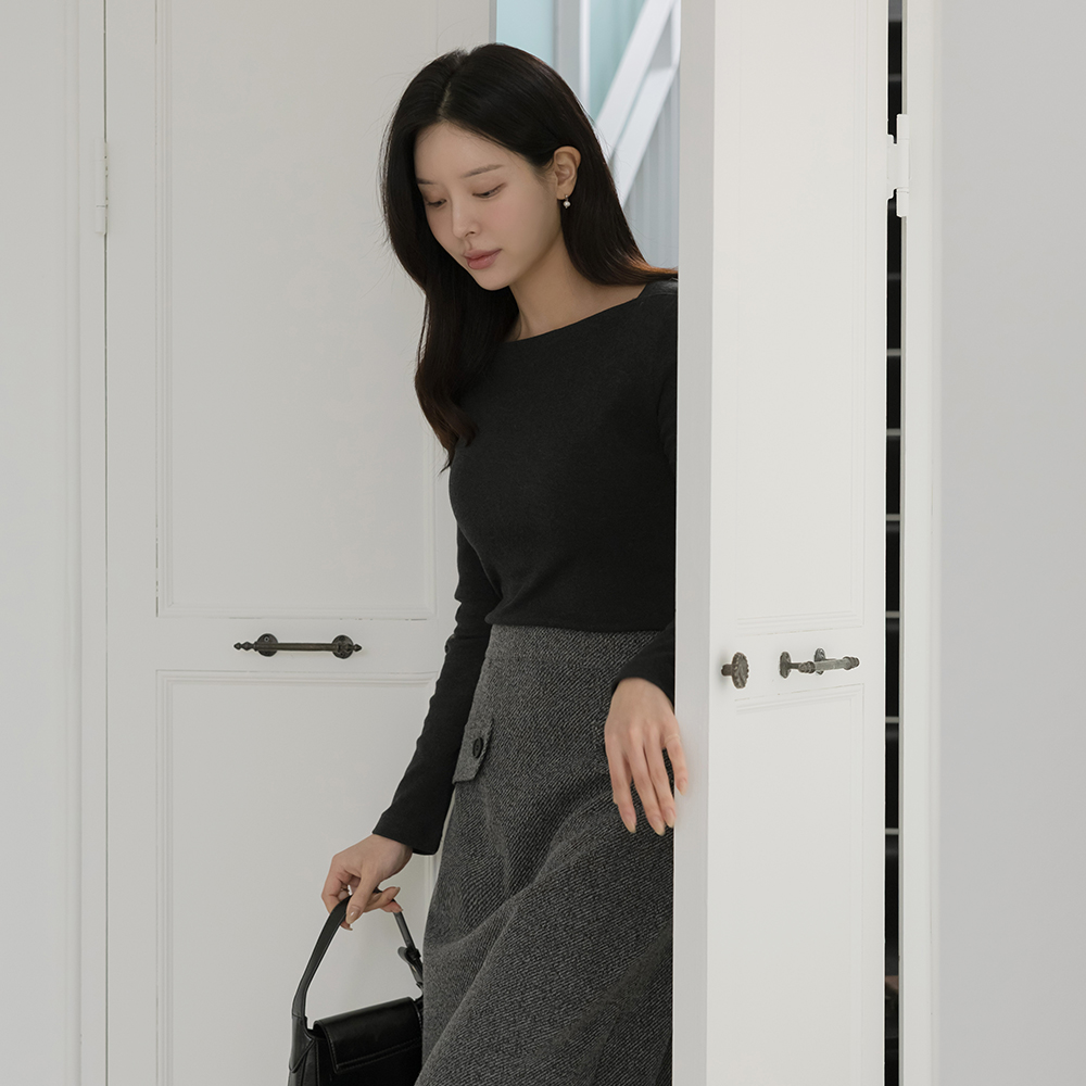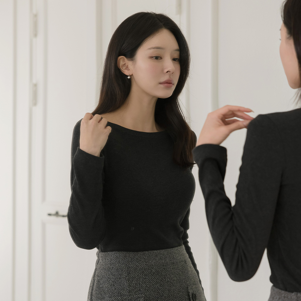 宽松 方领 弹力 T恤衫