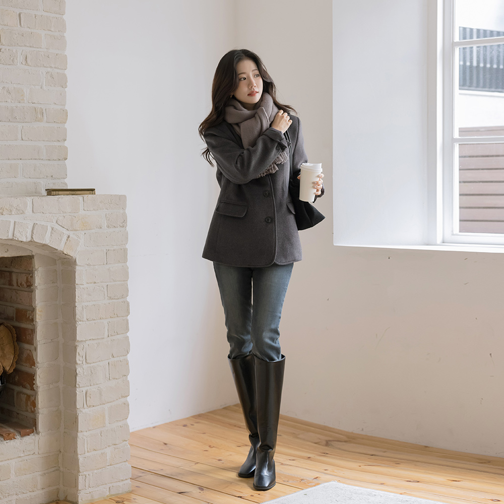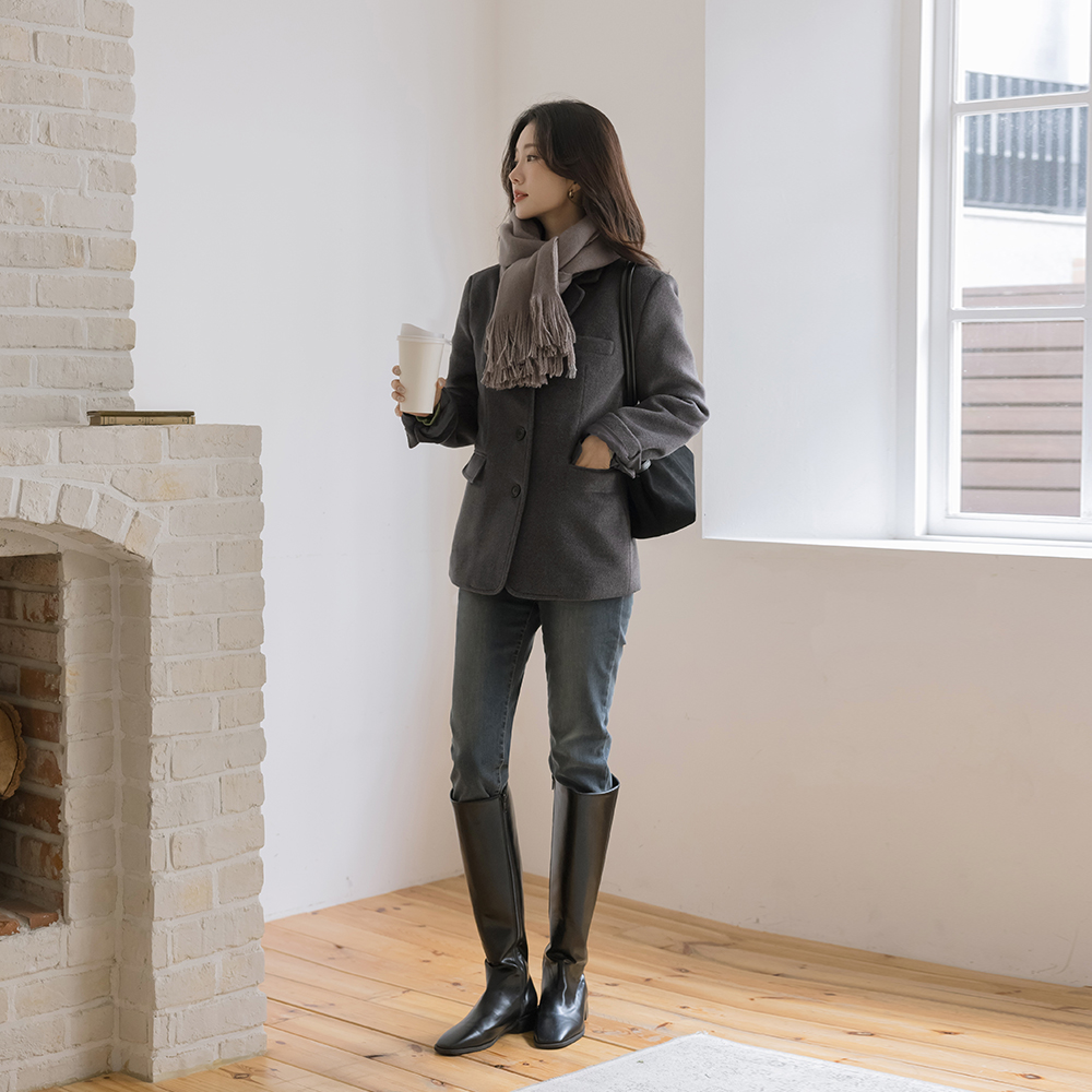 斯利姆 一字型 拉绒 弹力 牛仔色 裤子