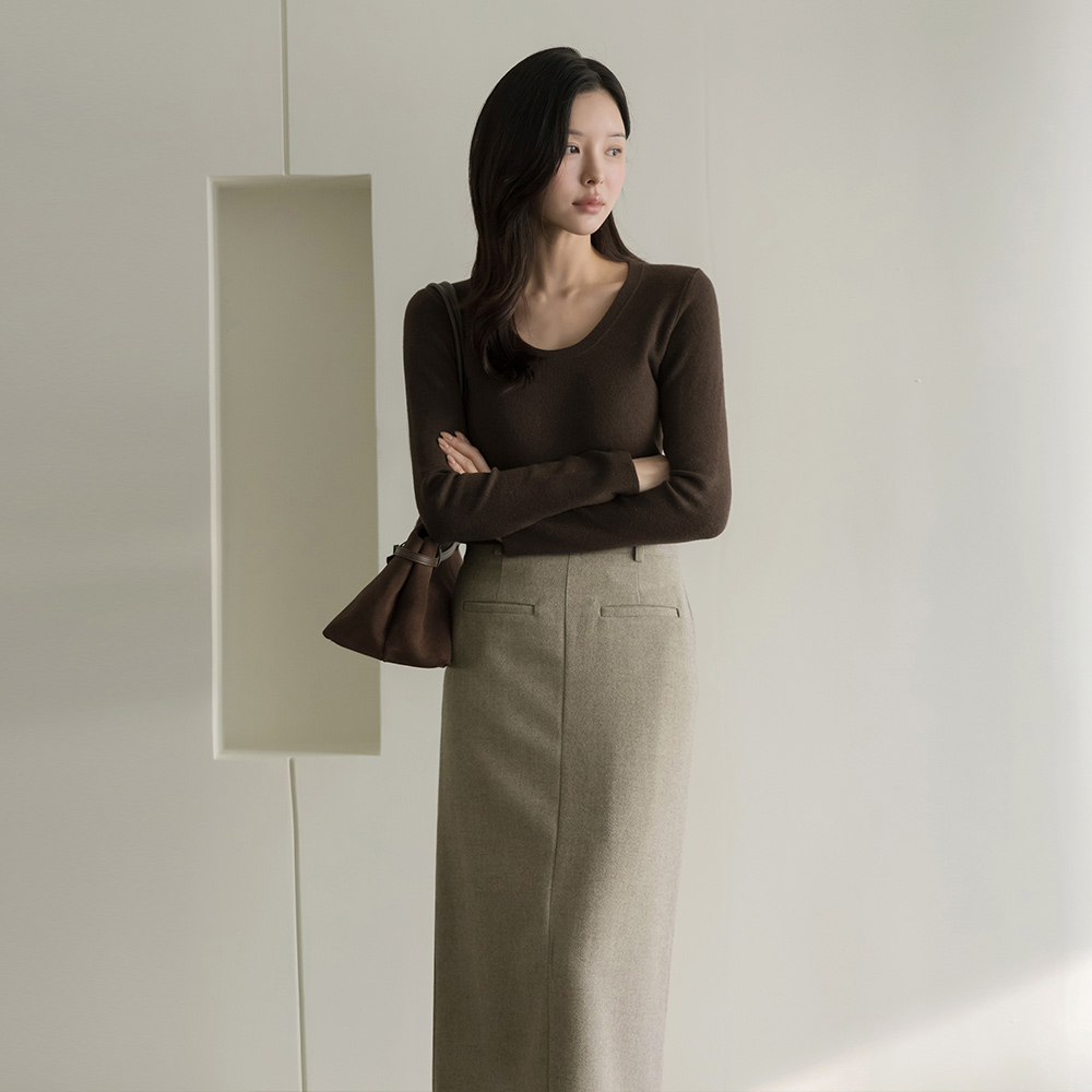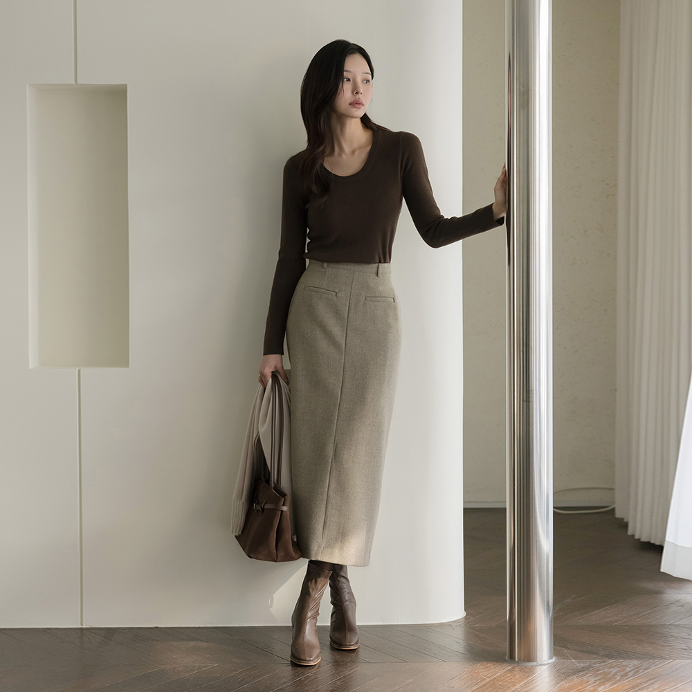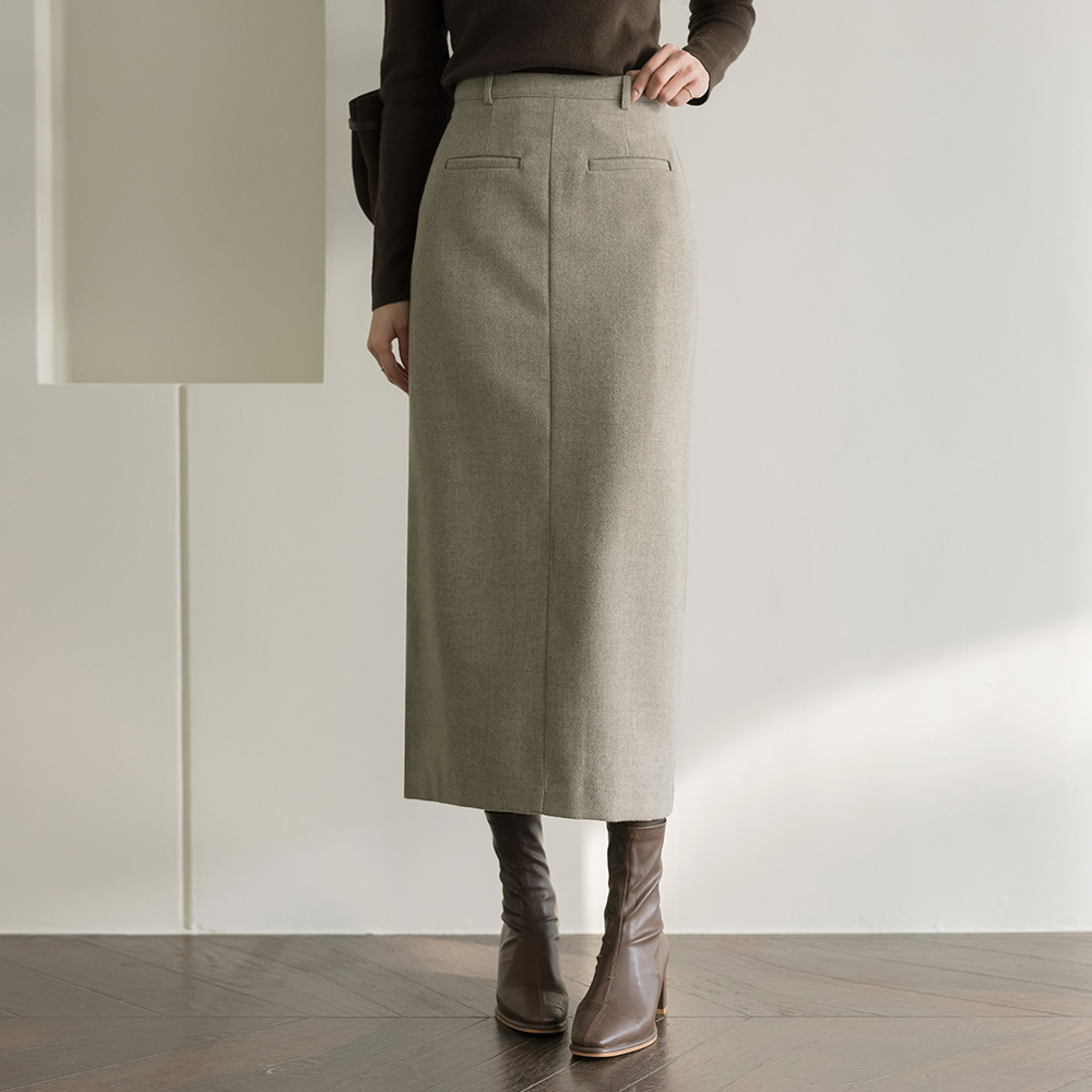 羊毛 口袋 羊毛 H字型 长款 裙子