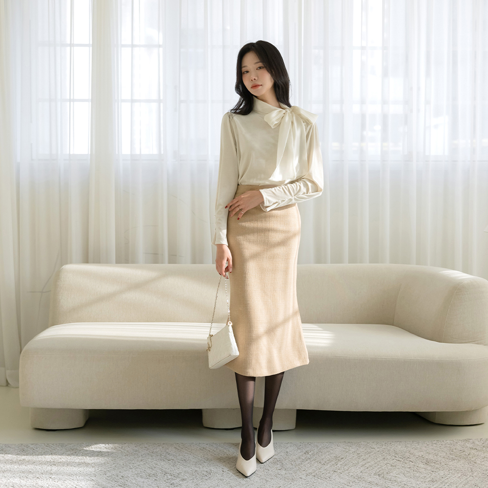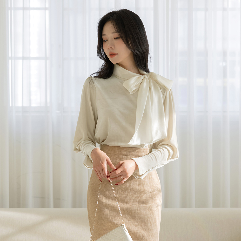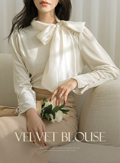 围巾领 丝绒 珍珠 罩衫