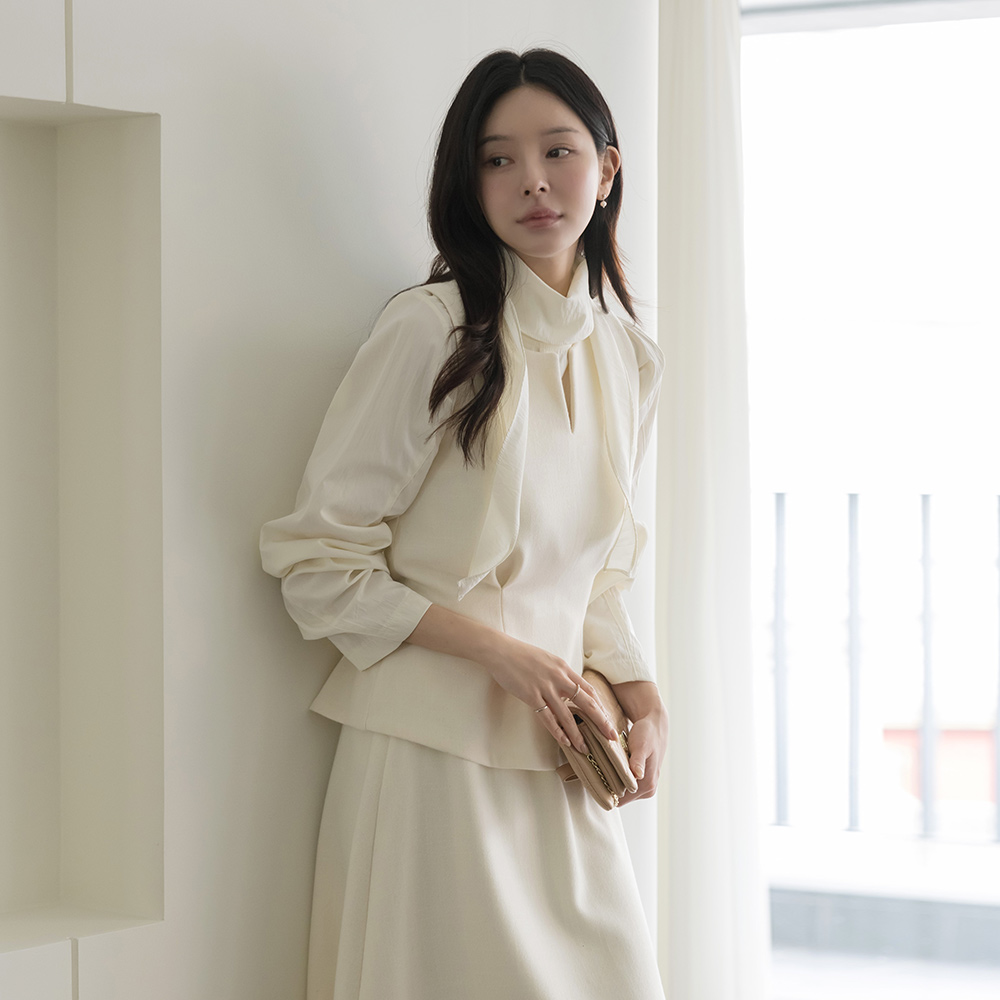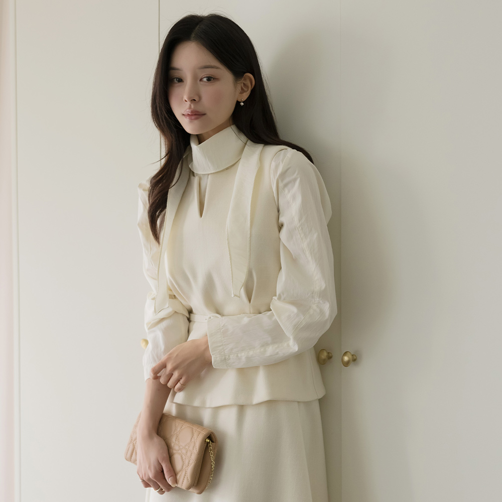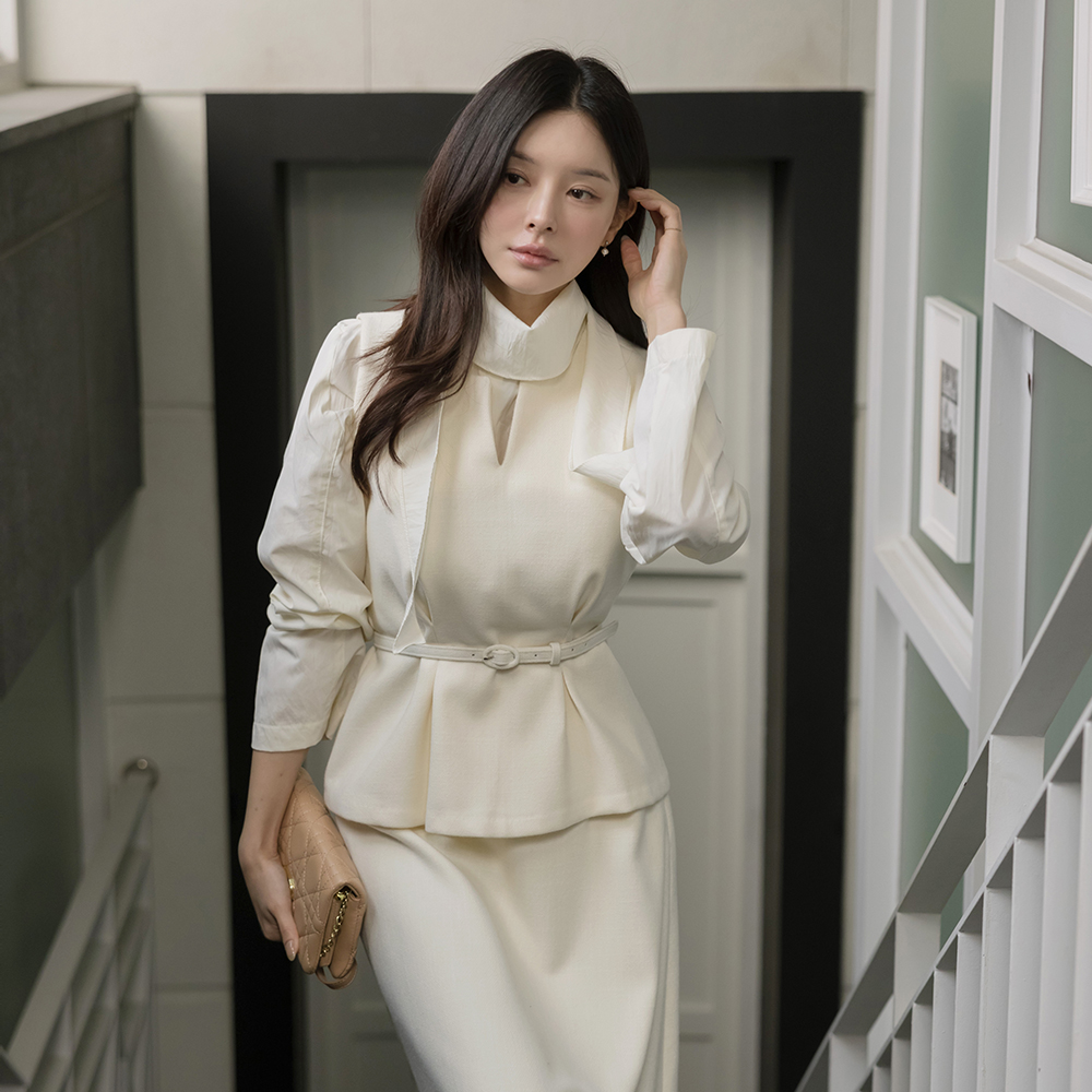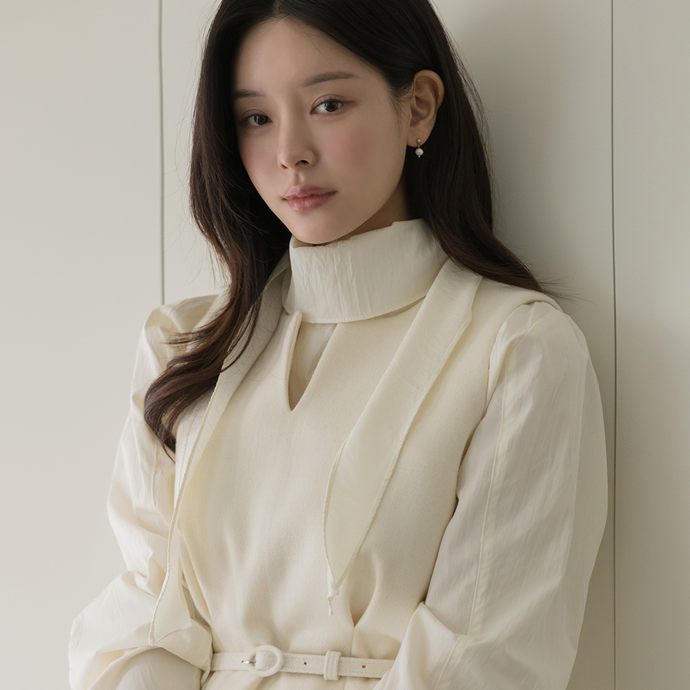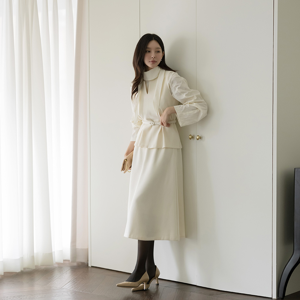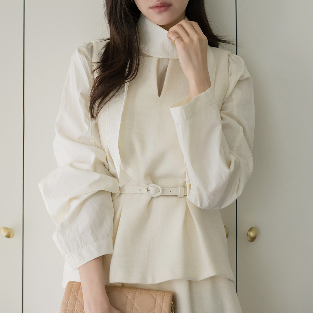 安娜 羊毛 拉绒 马甲 Set-up 罩衫(+腰带)