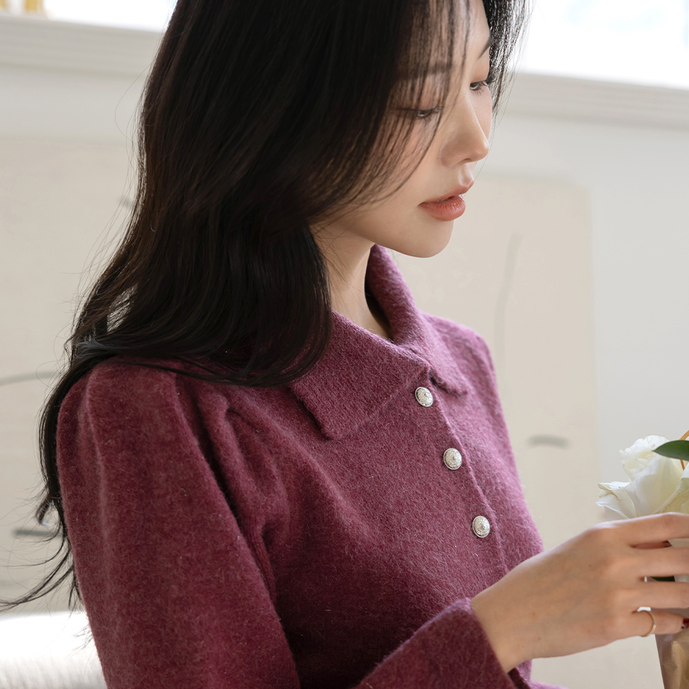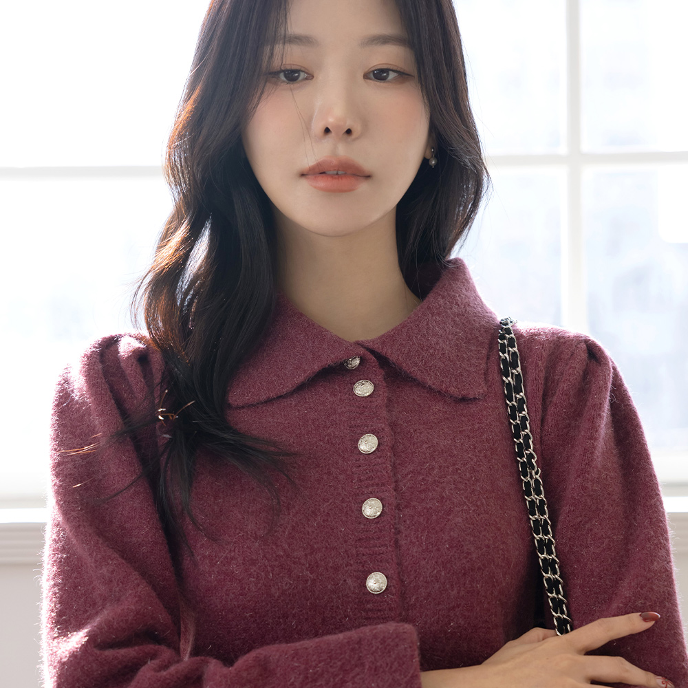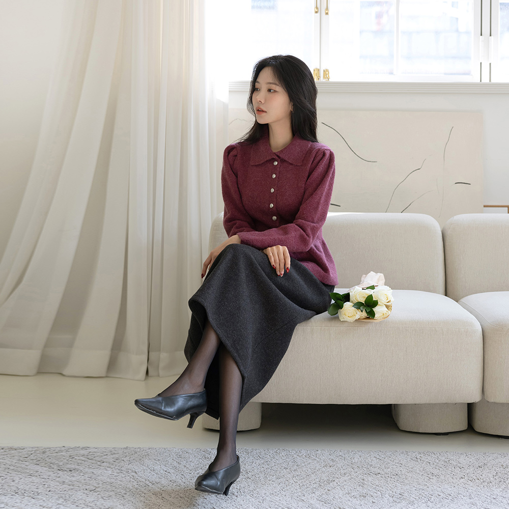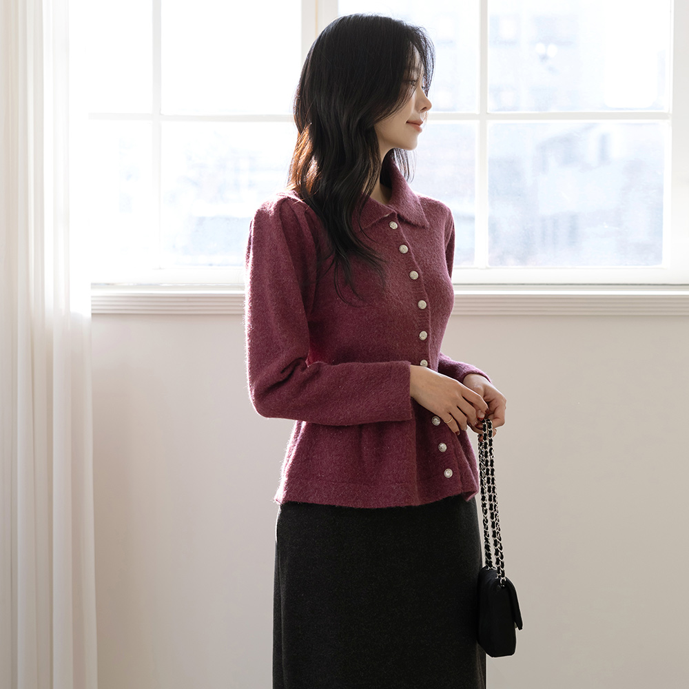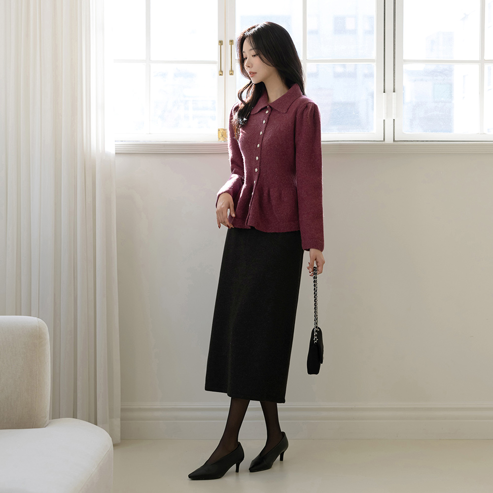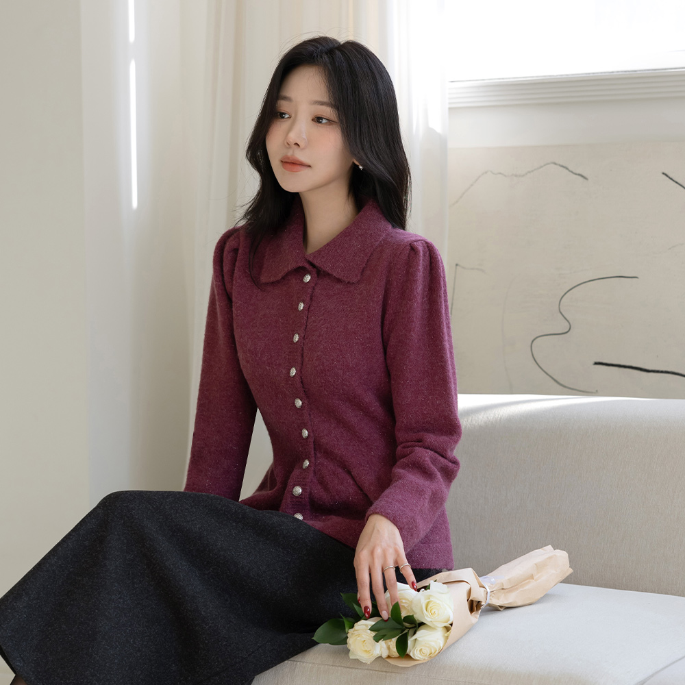翻领 闪亮 羊毛 荷叶边 开衫