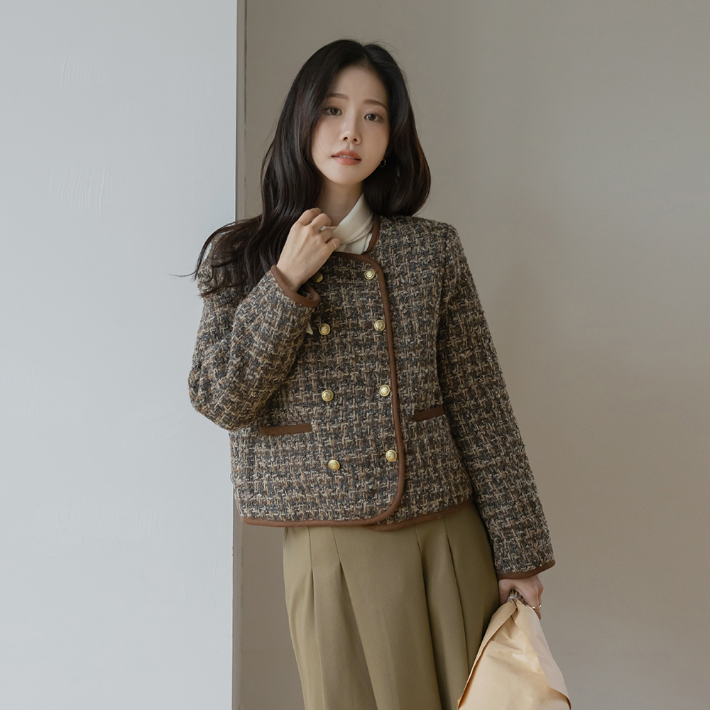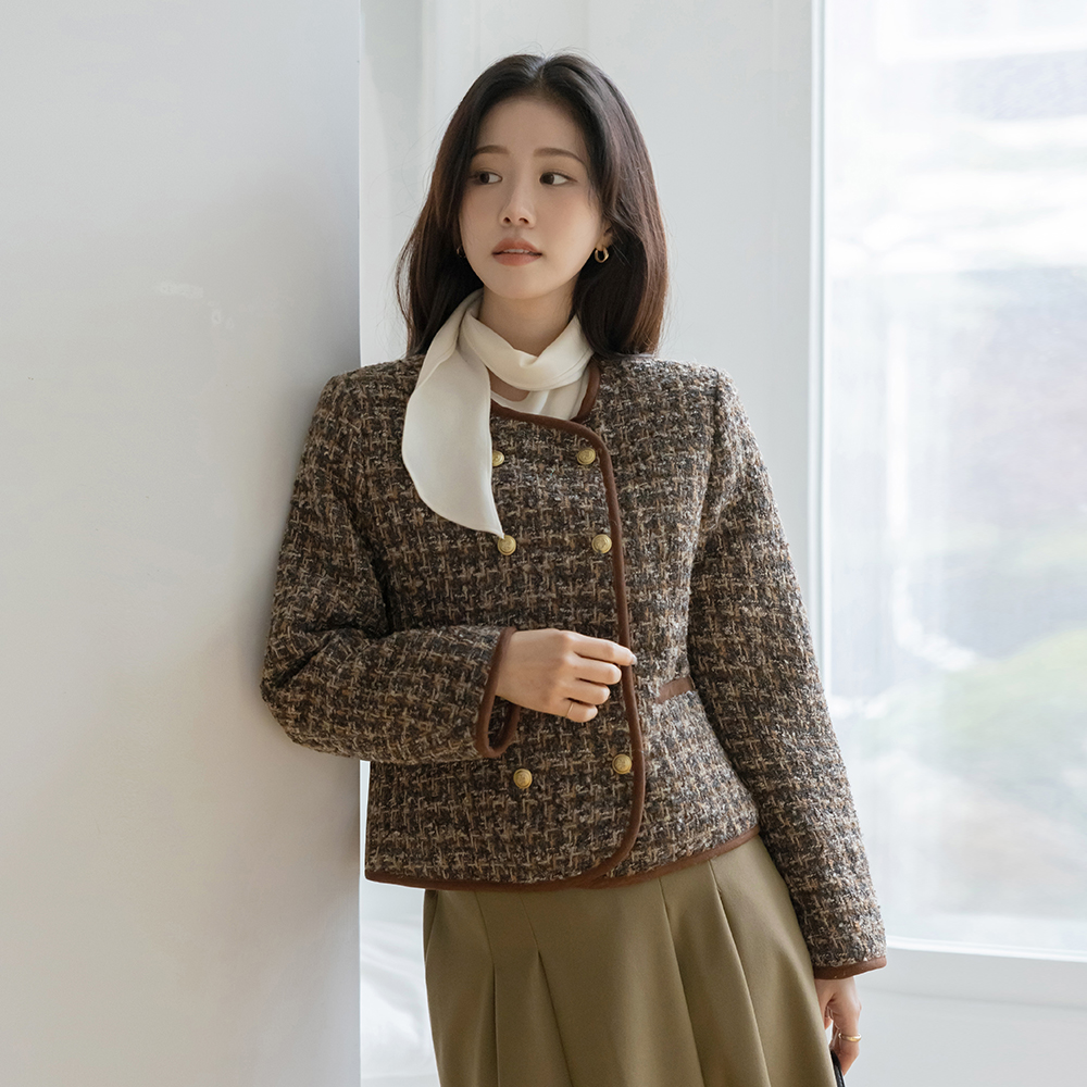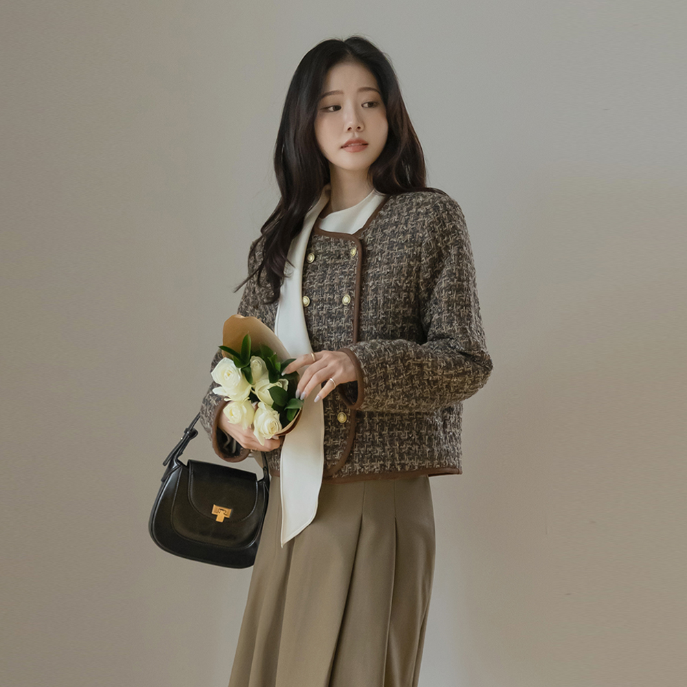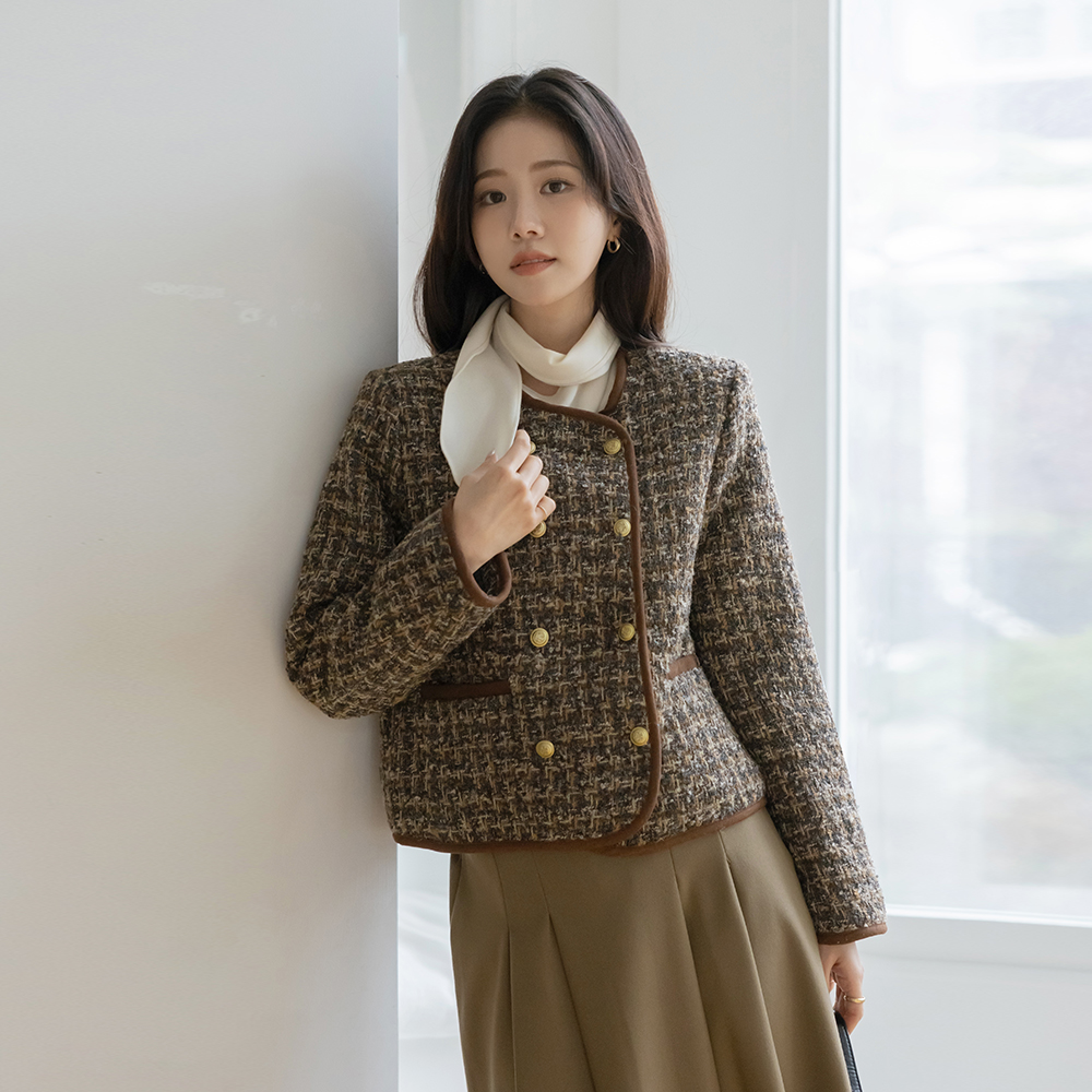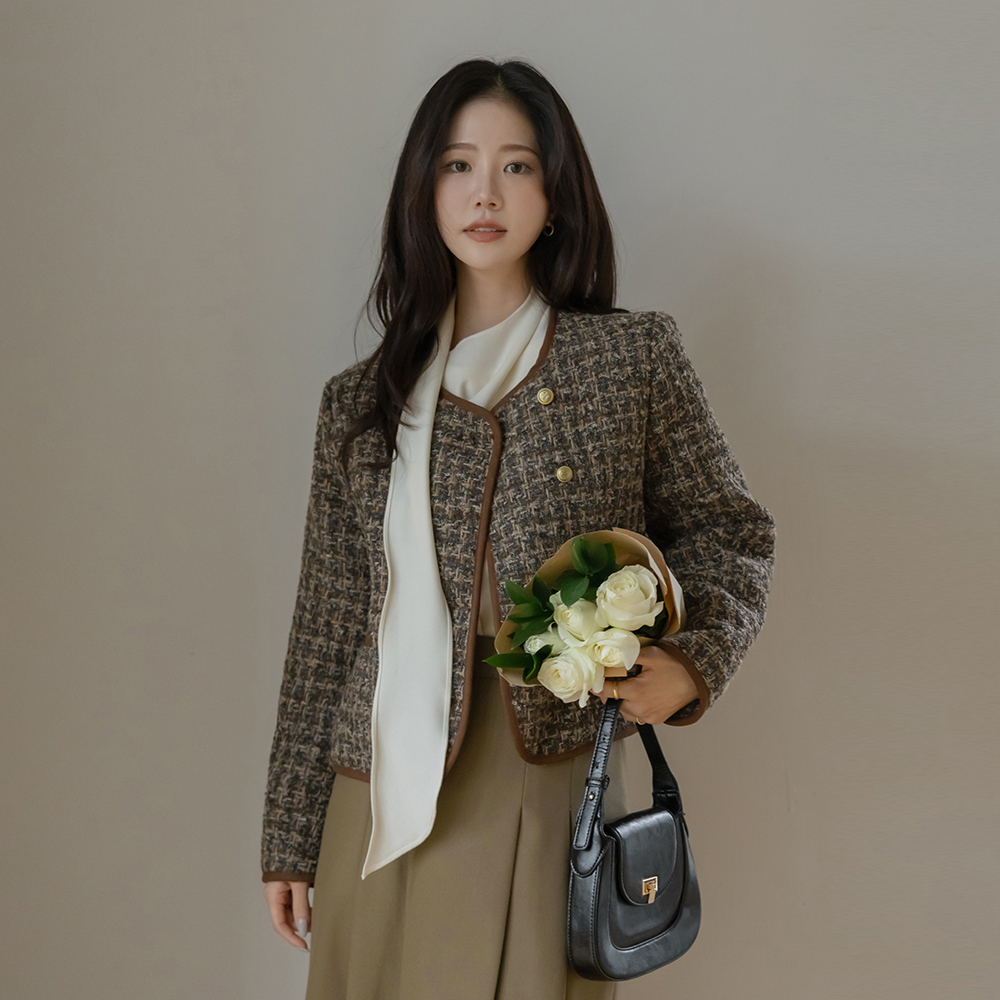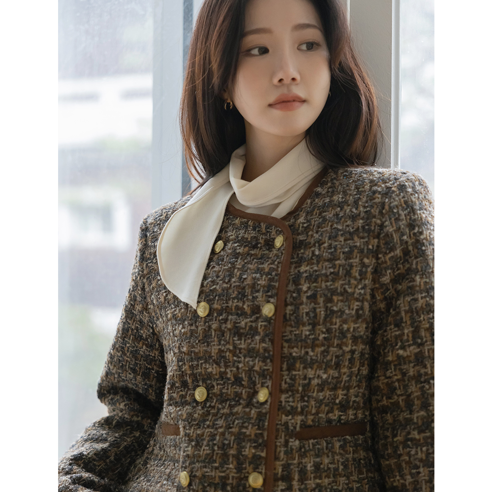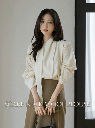 围巾领 겉기모 羊毛 罩衫
