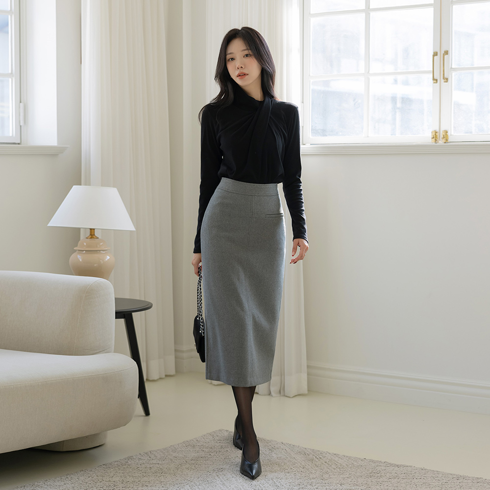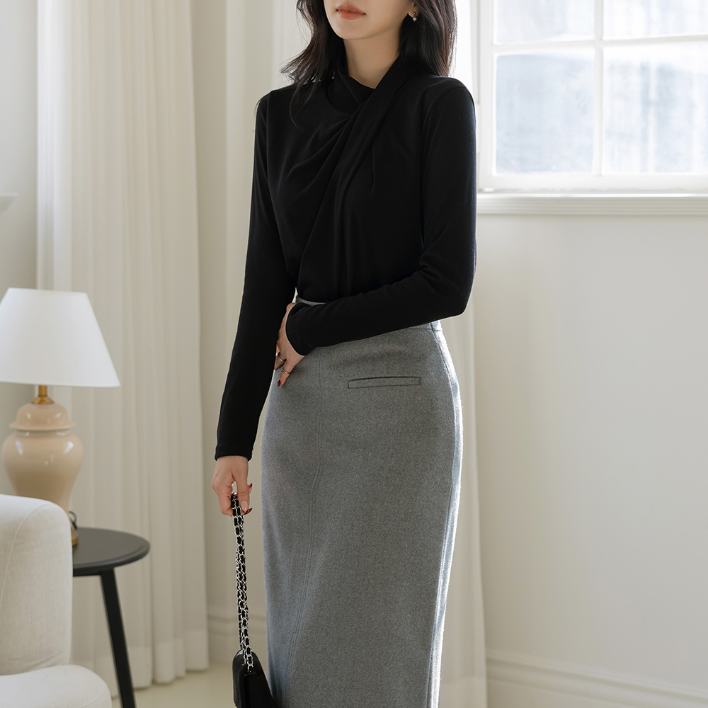 扭曲 不对称 高领 T恤衫