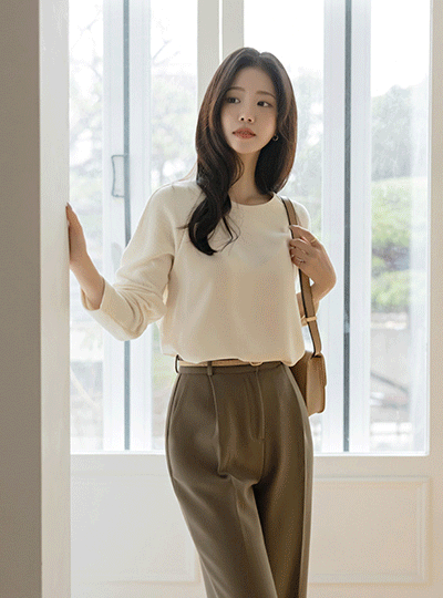 Ellin 원핀턱 休闲风格 宽松 拉绒 宽松长裤
