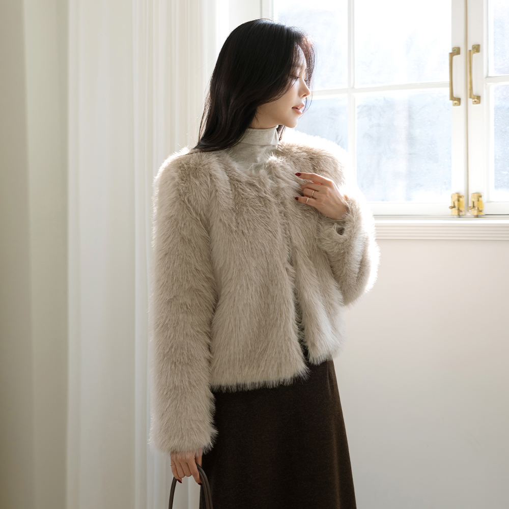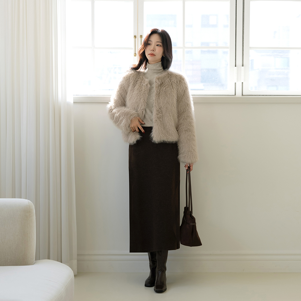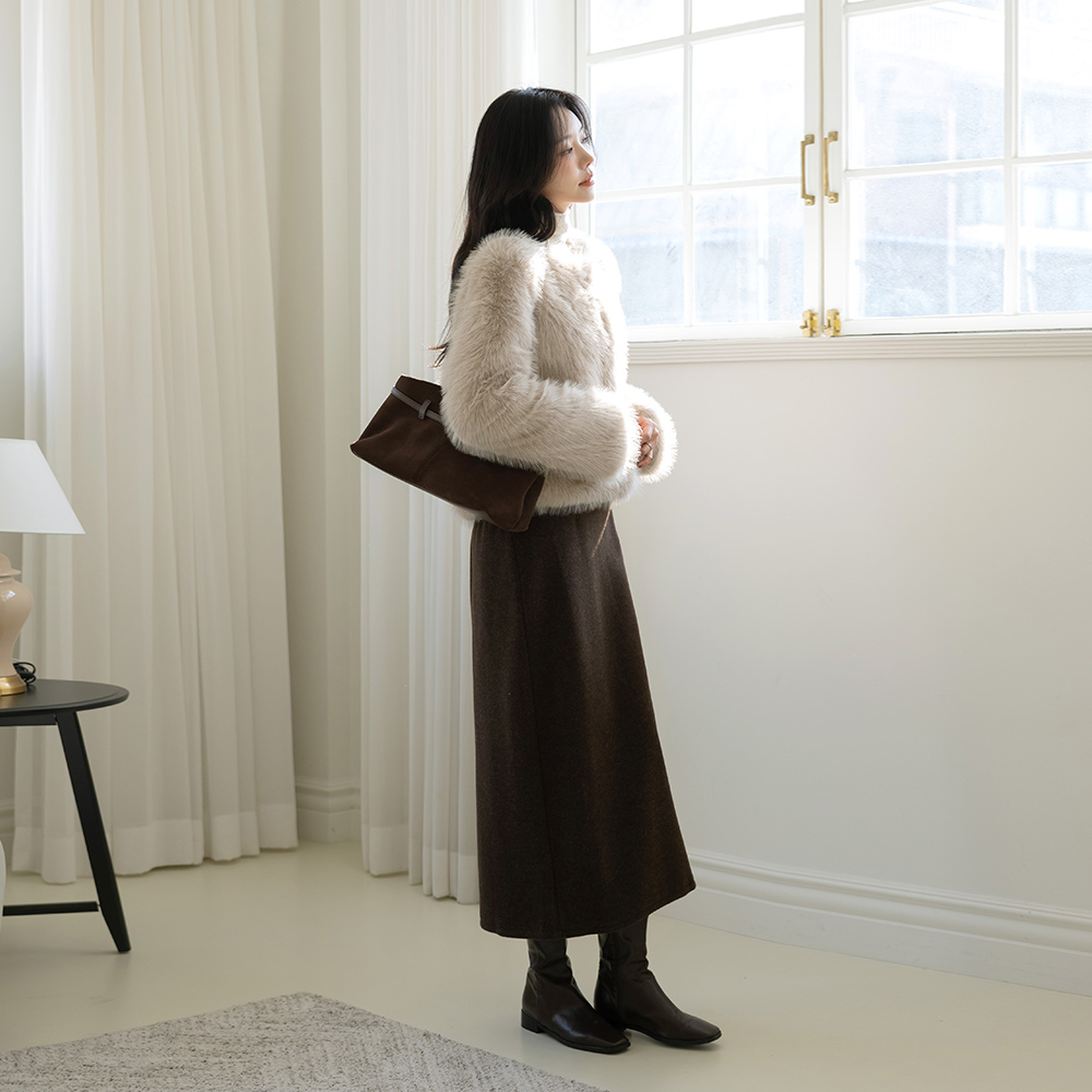 皮草大衣 拉绒 后侧松紧带 H字型 长款 裙子
