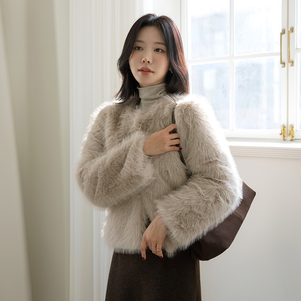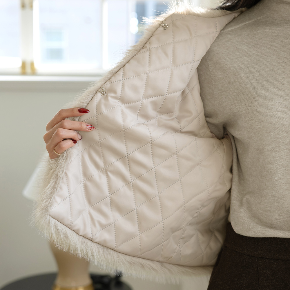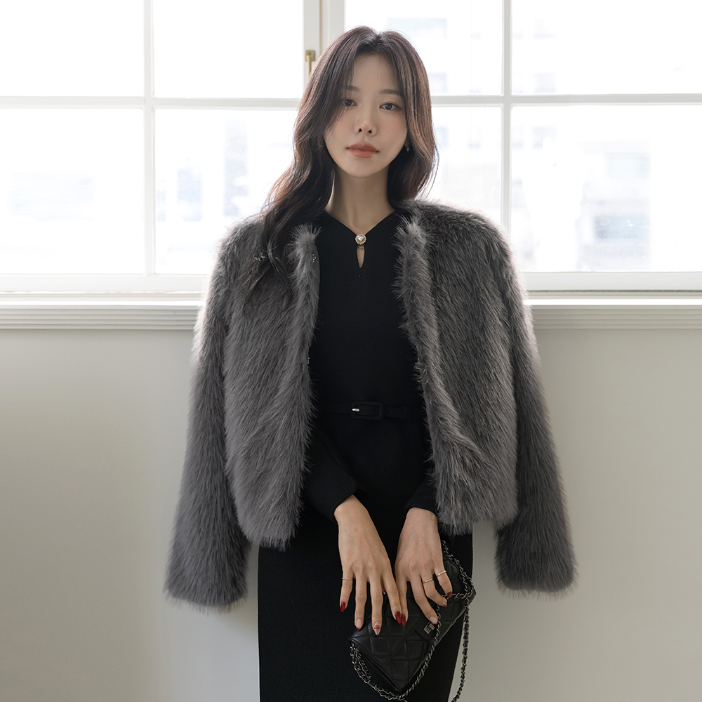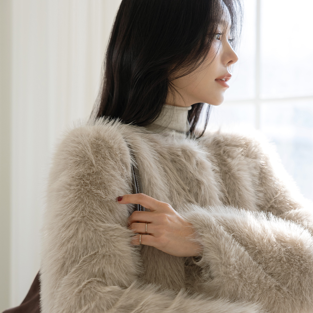 皮草大衣 拉绒 后侧松紧带 H字型 长款 裙子