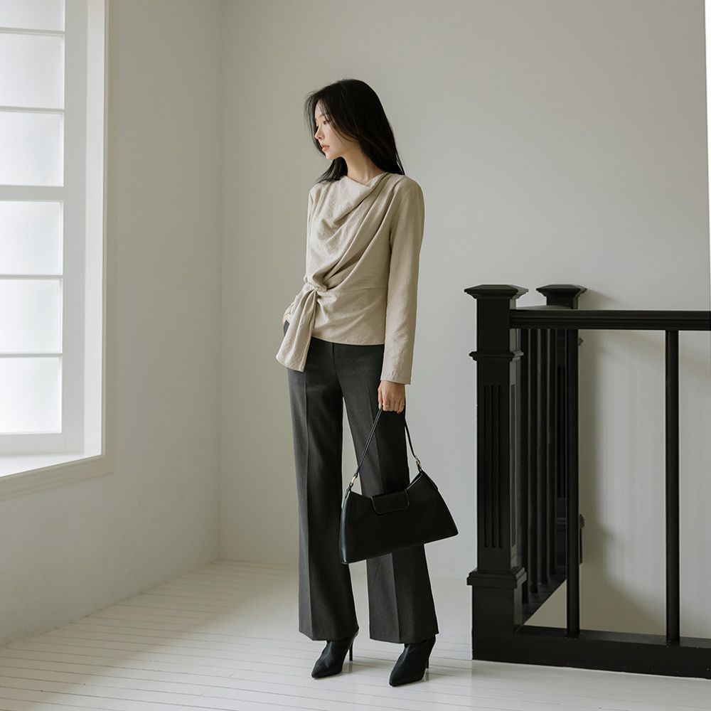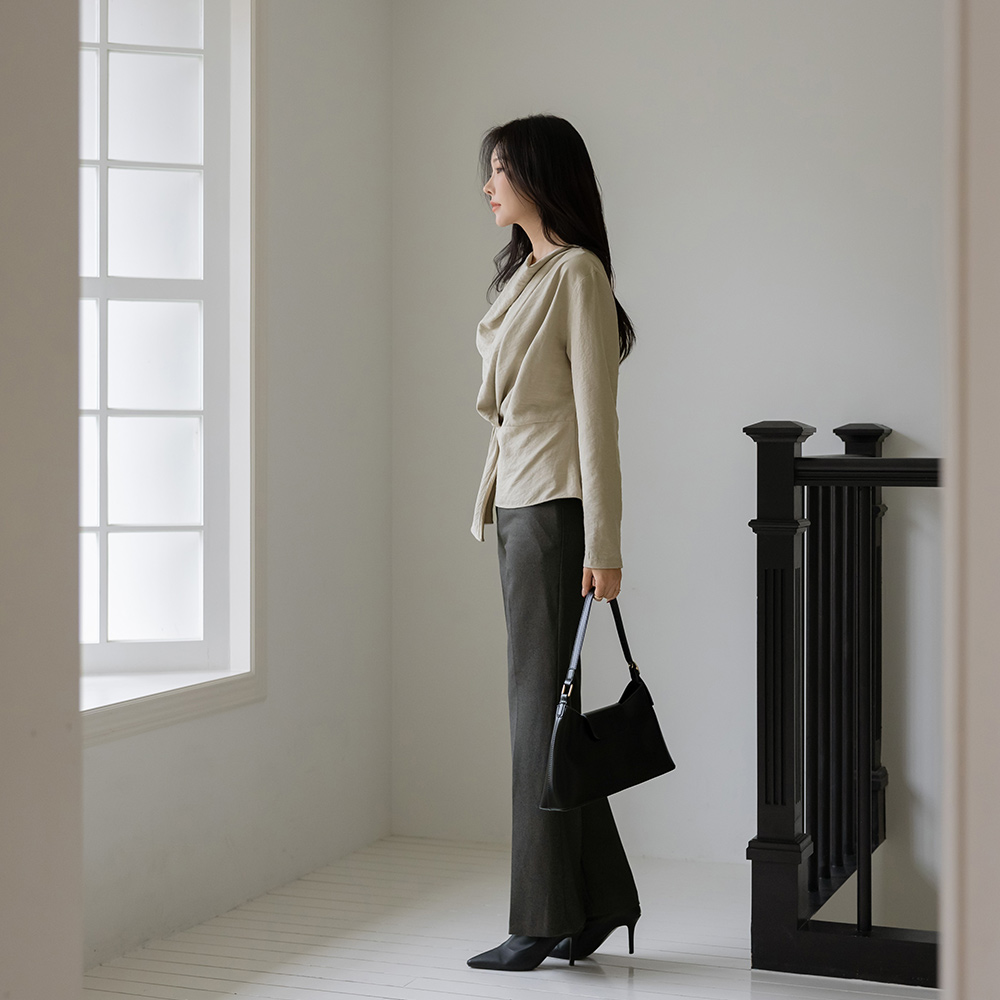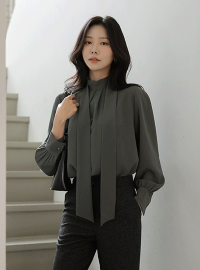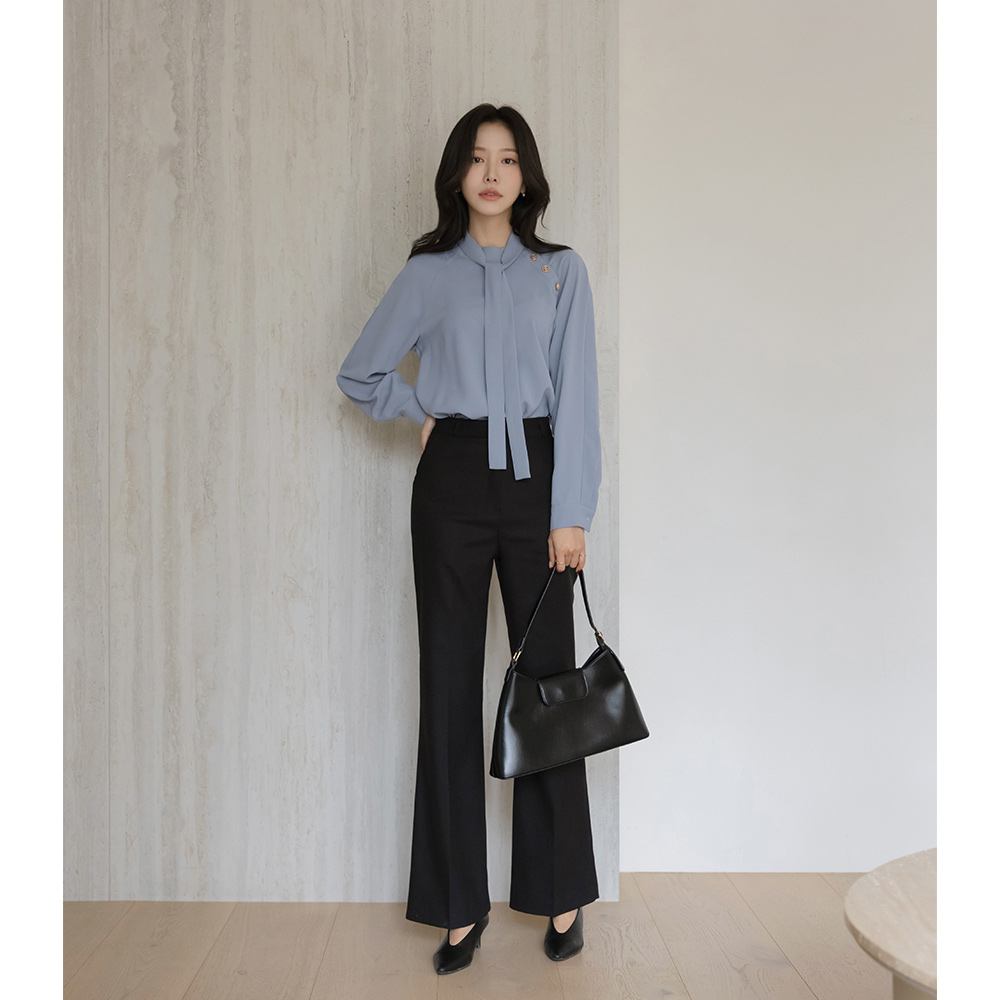 世利 金色纽扣 插肩袖 罩衫(+领带)