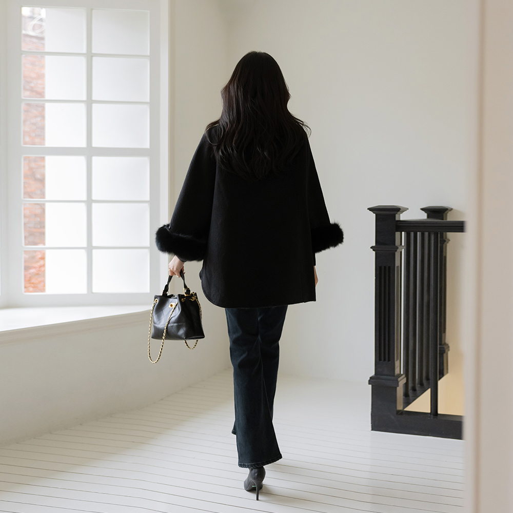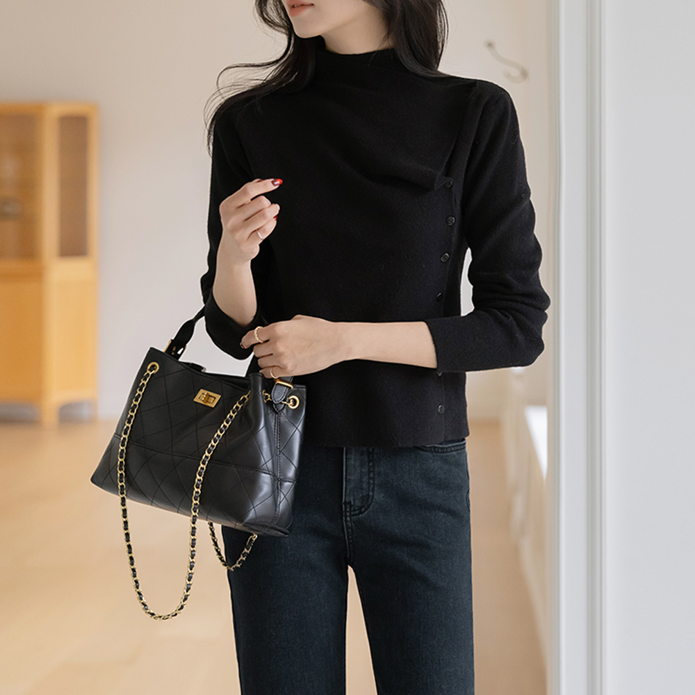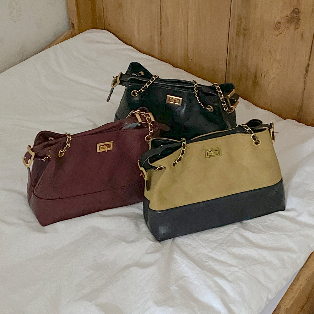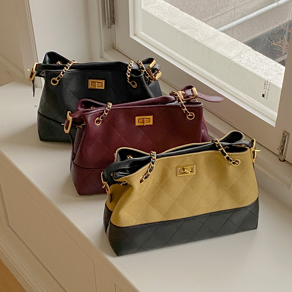 翻毛皮&皮 绗缝 链条 肩包