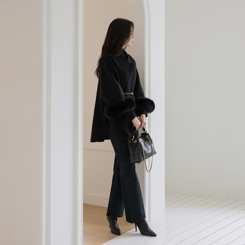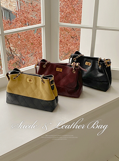 翻毛皮&皮 绗缝 链条 肩包