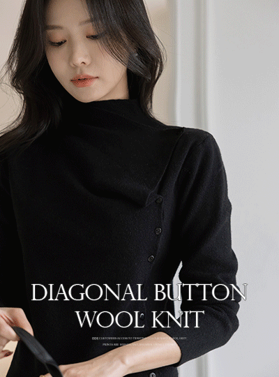 斜线 不规则 扣子 羊毛 半高领 针织衫