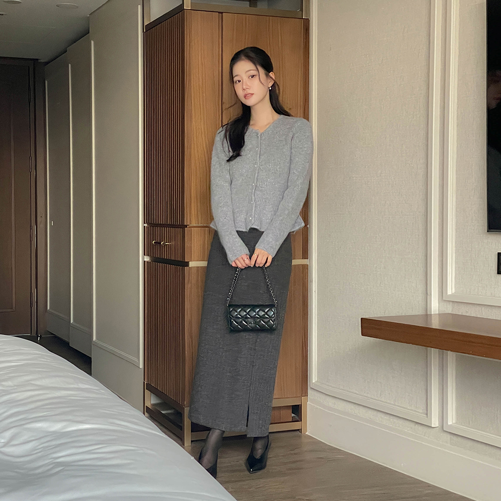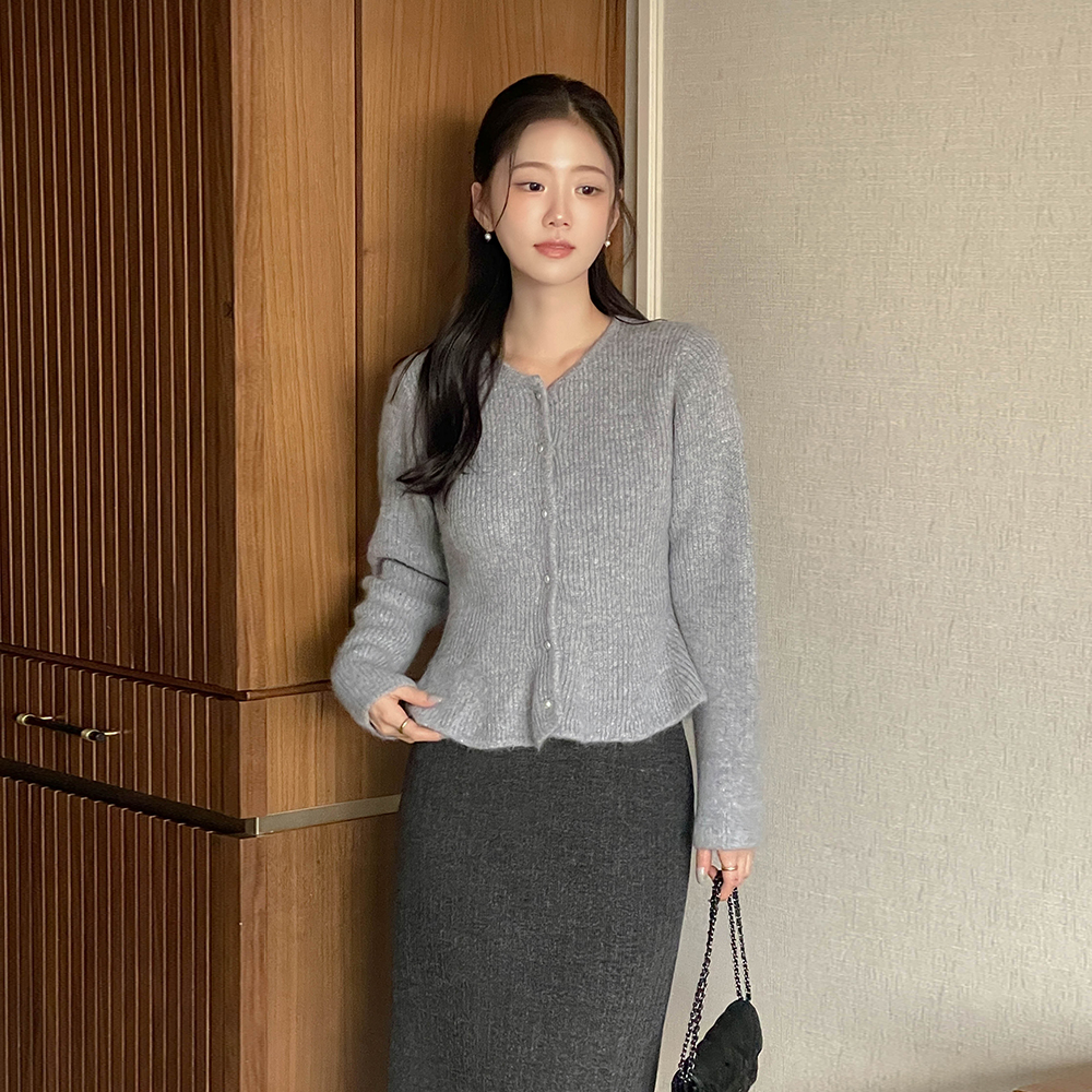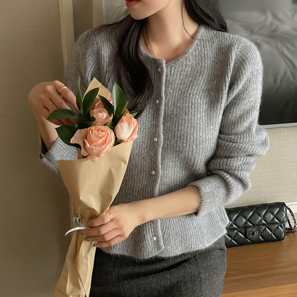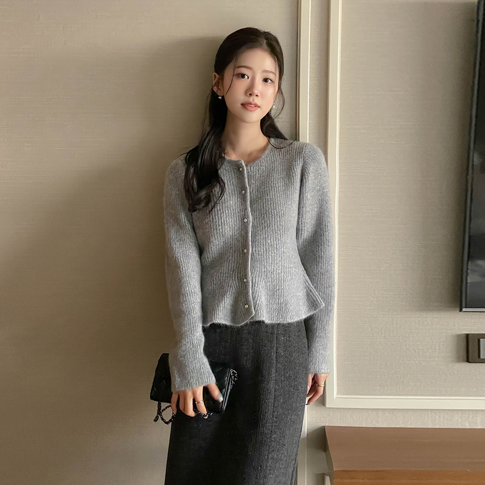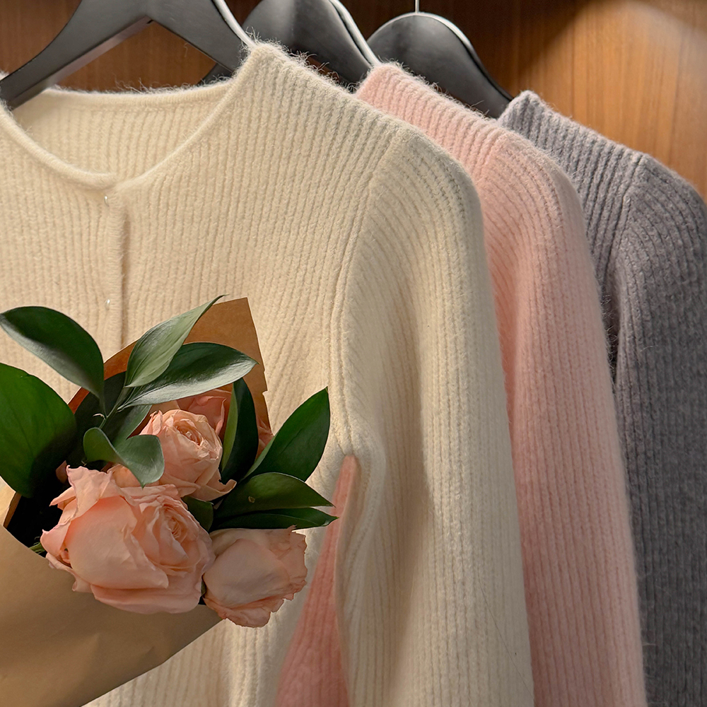圆领 荷叶边 珍珠 安哥拉 开衫