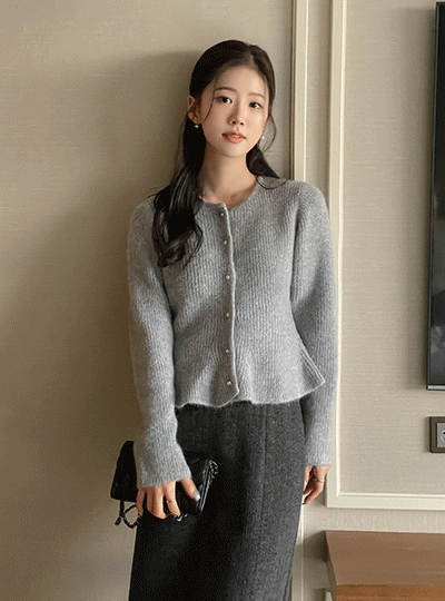 圆领 荷叶边 珍珠 安哥拉 开衫