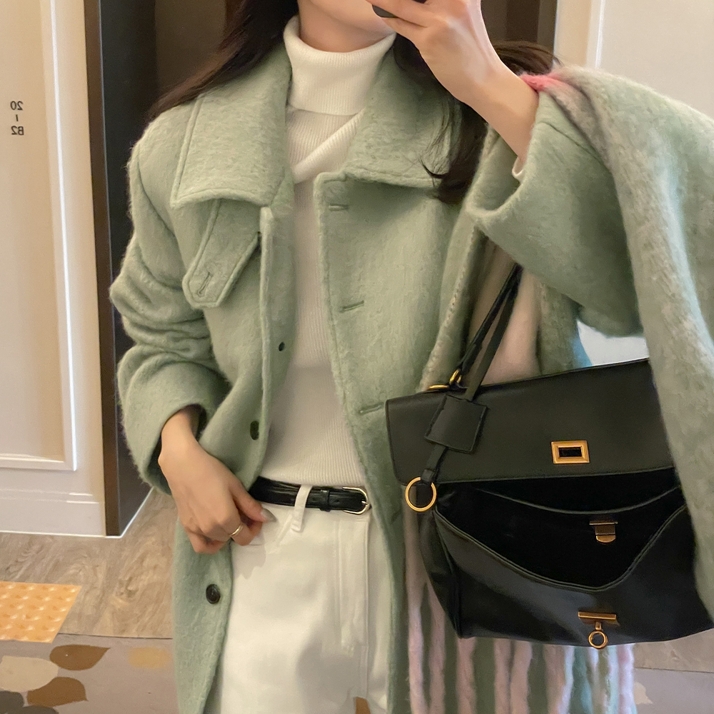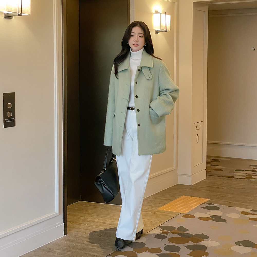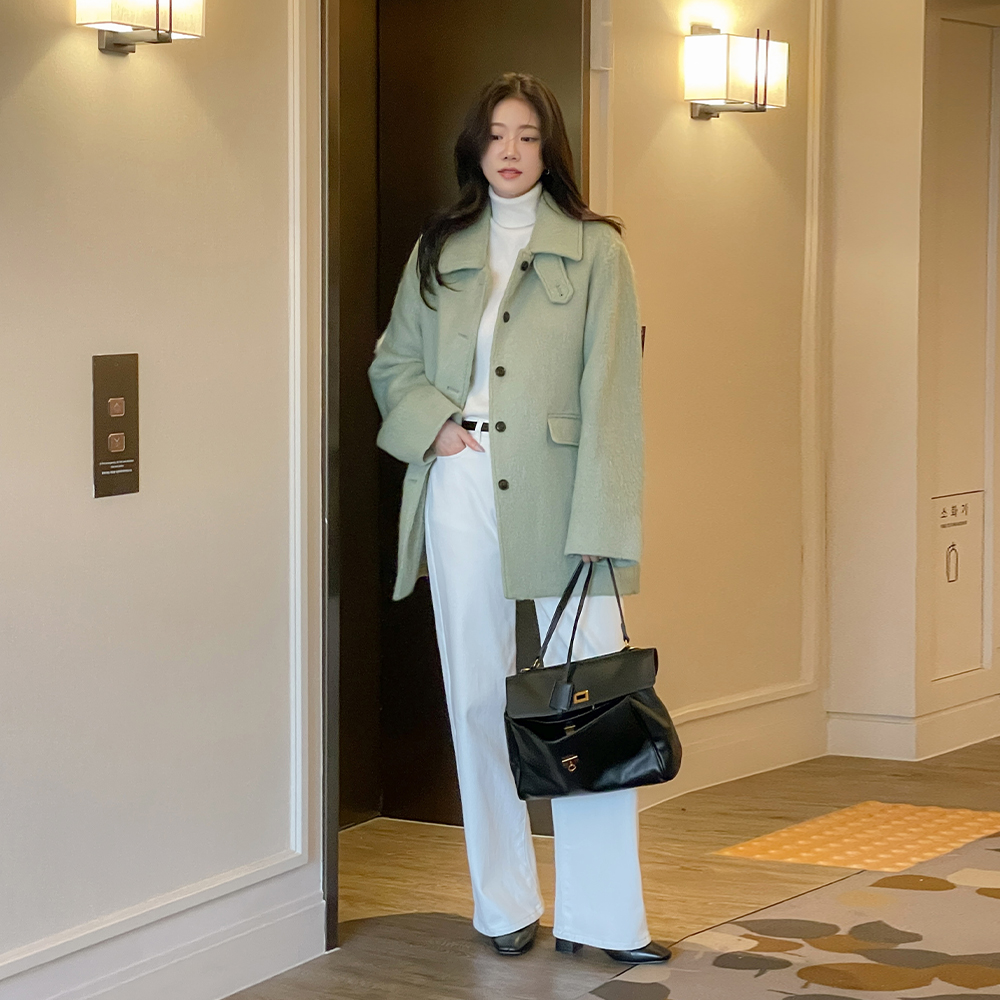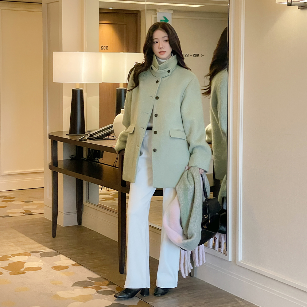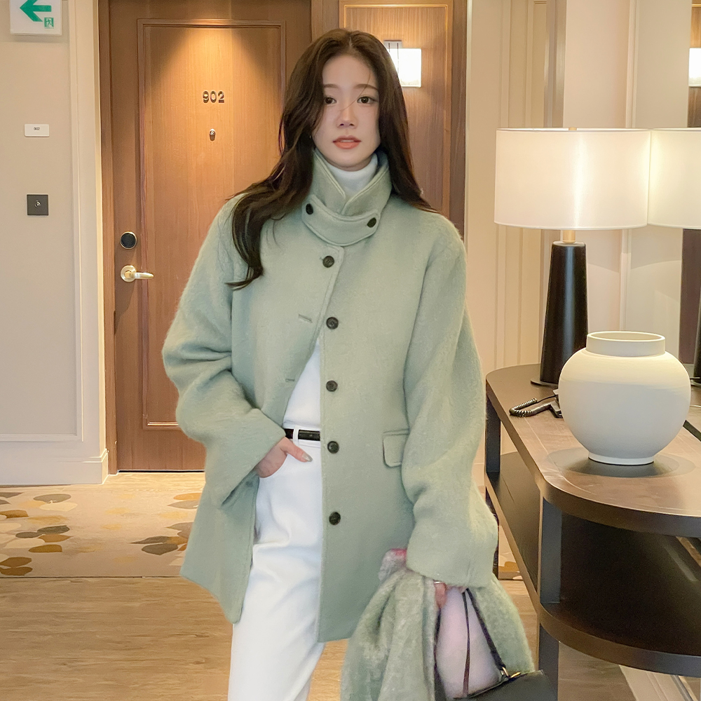 高龄 扣带 3唡 羊毛 短上衣 大衣