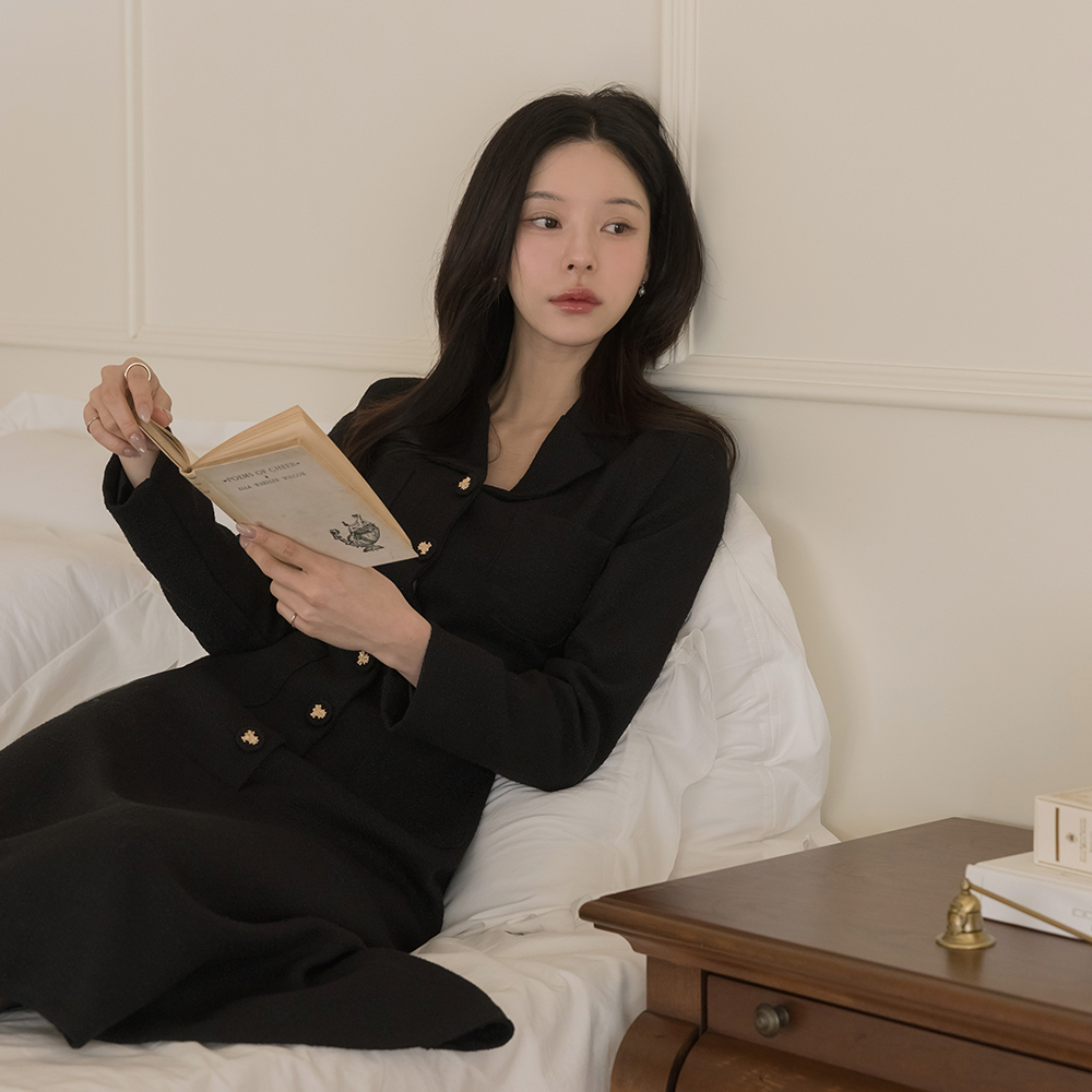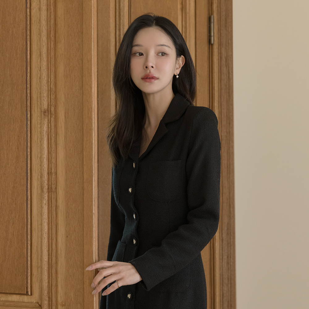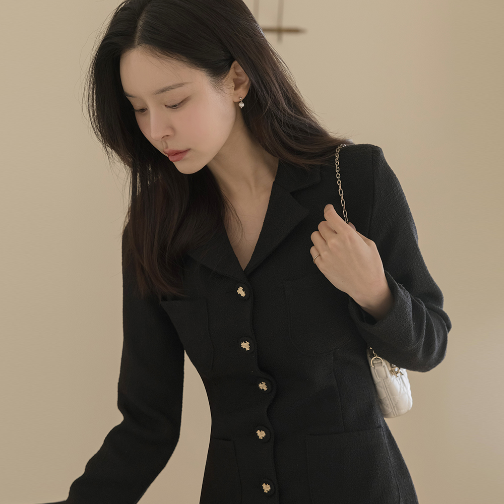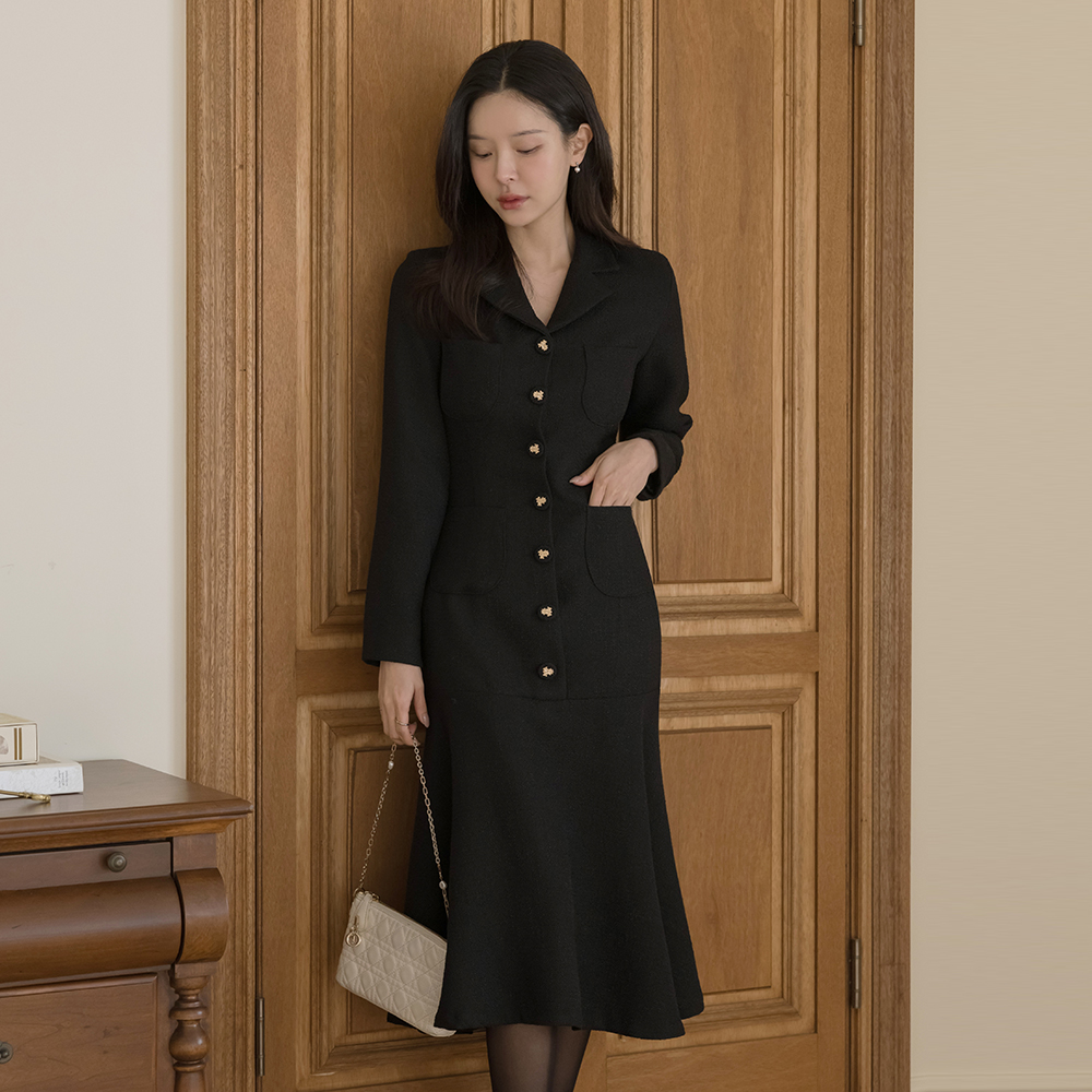 订制领子 美人鱼 粗呢 长款 连衣裙