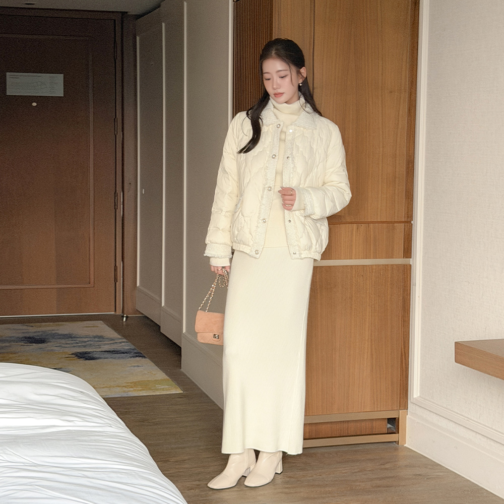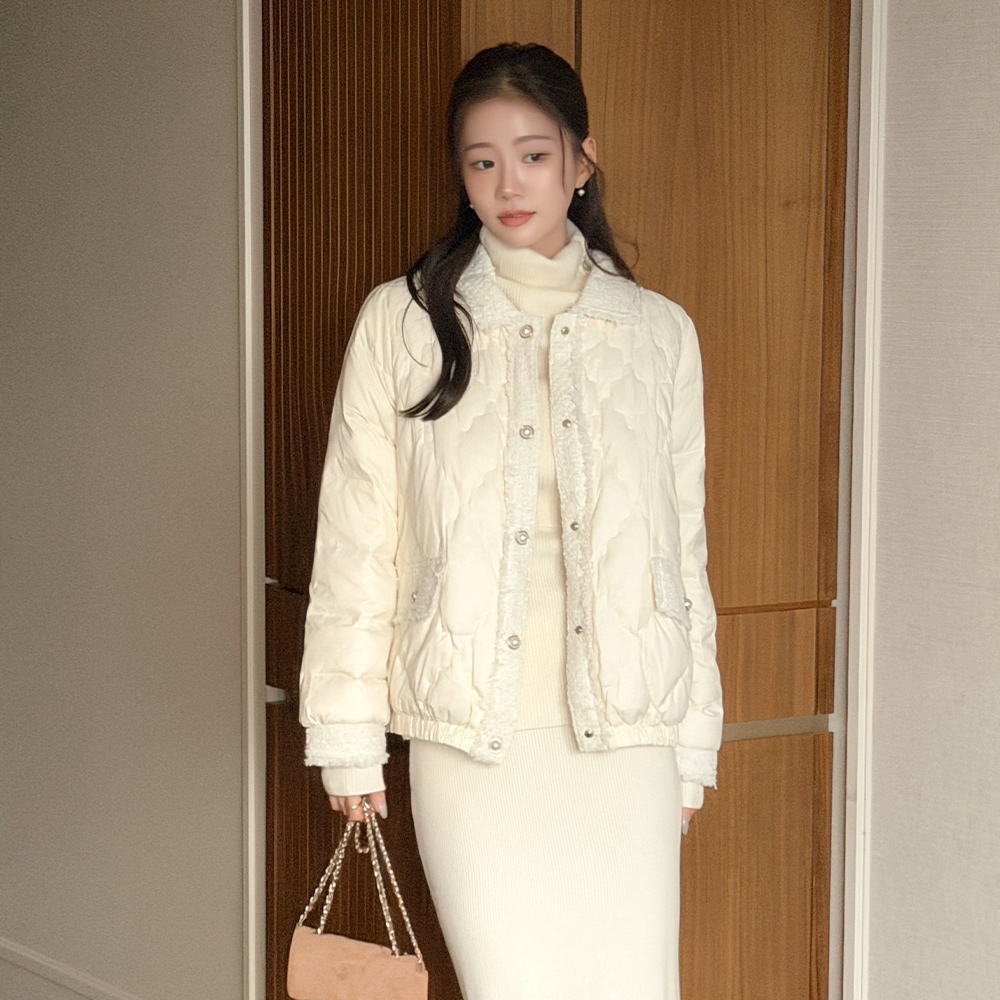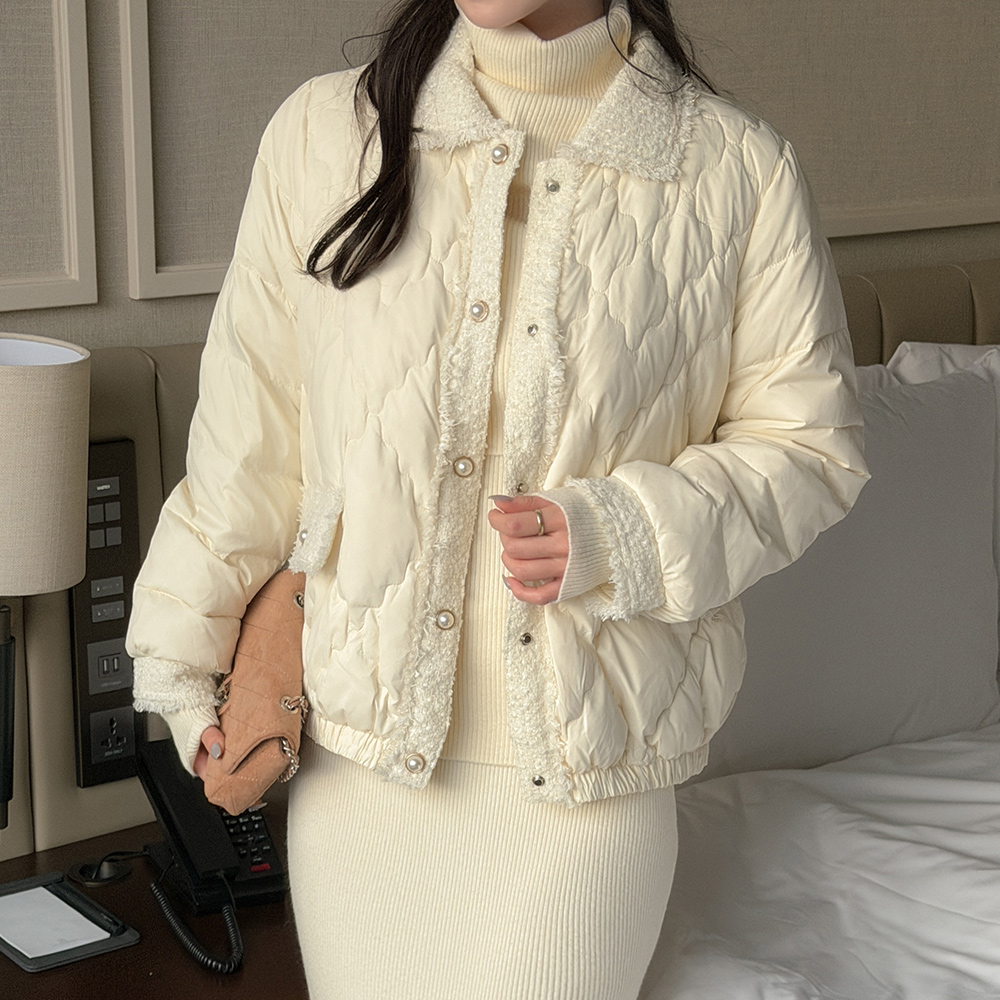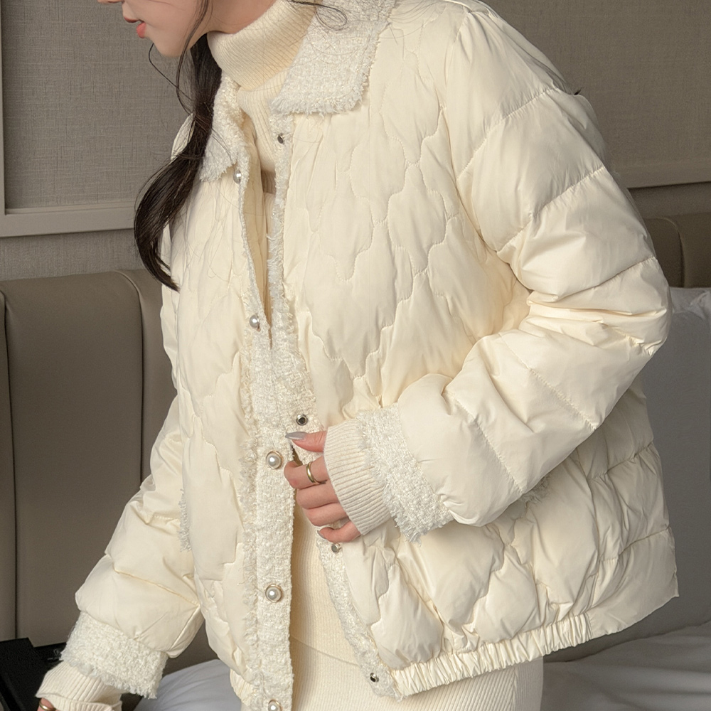 鸭绒 粗呢 配色 珍珠 羽绒服
