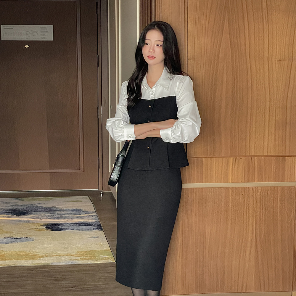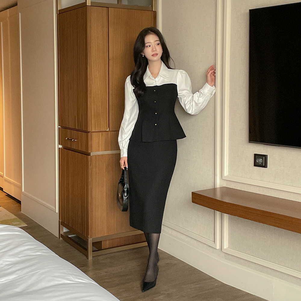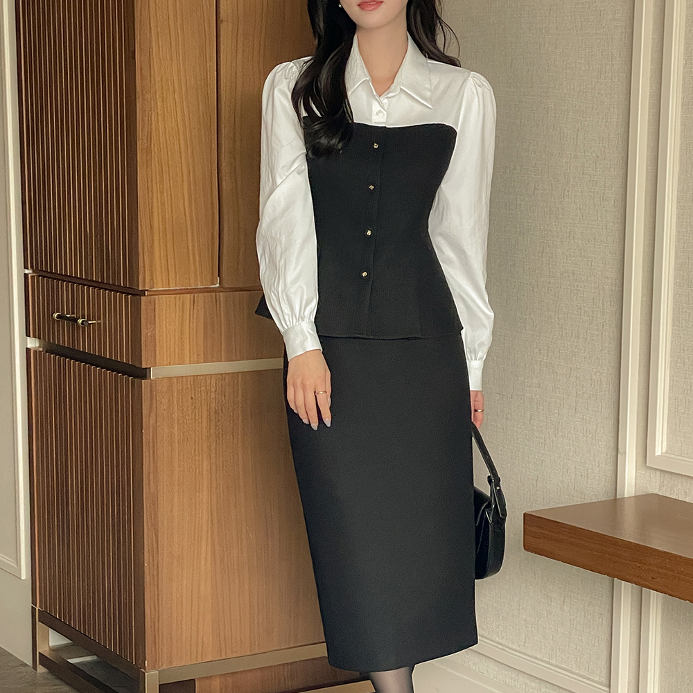安娜 配色 粗呢 Set-up 罩衫