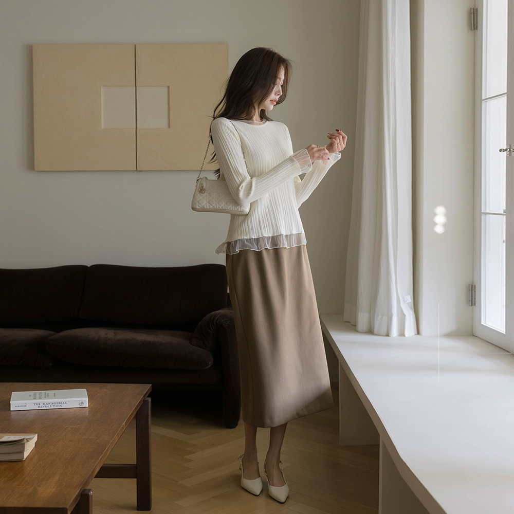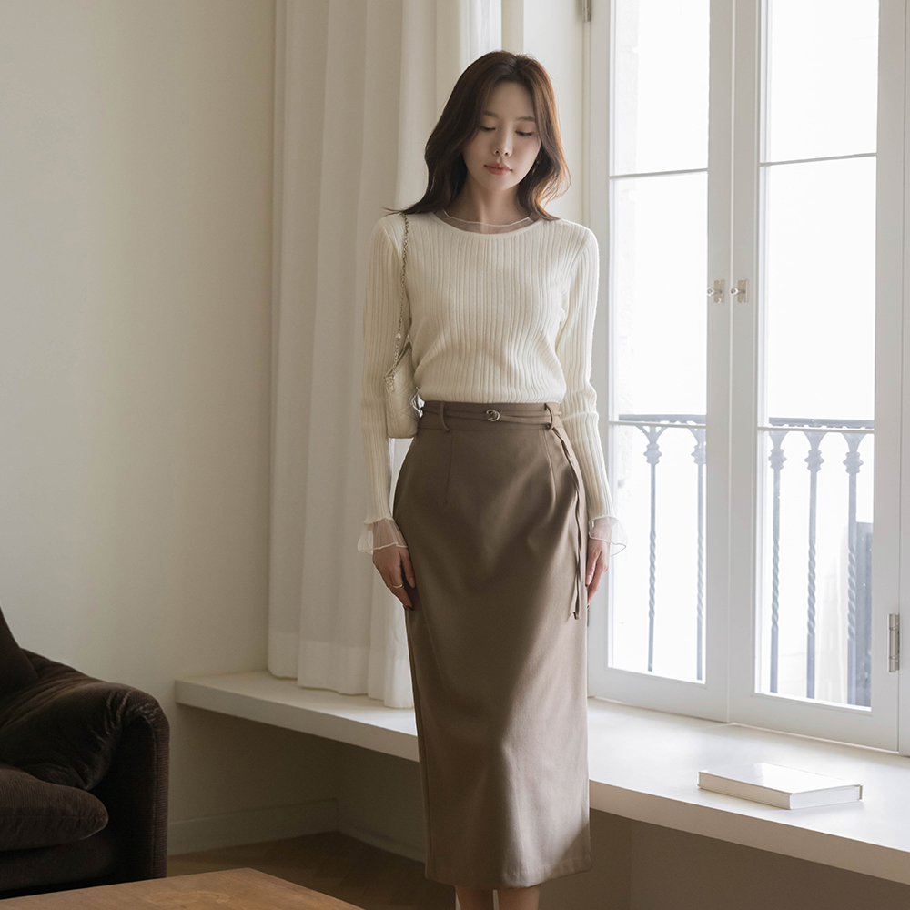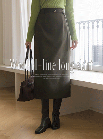 羊毛 后侧松紧带 H字型 长款 裙子(+腰带)