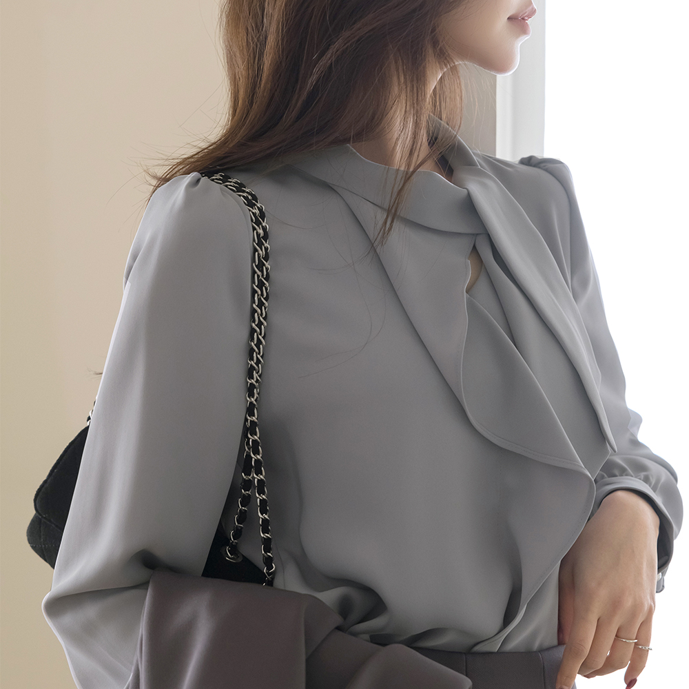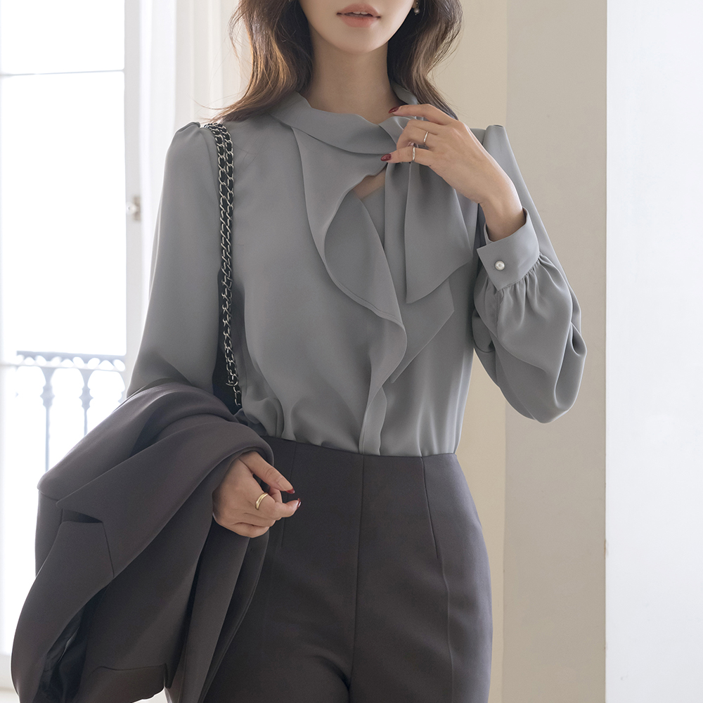 ODE 领带 荷叶 长袖 罩衫