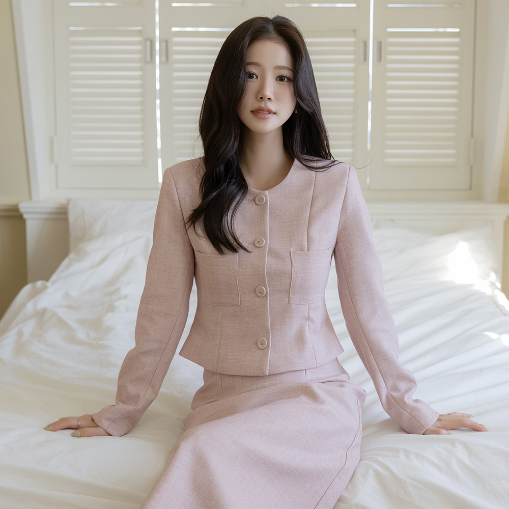 玫瑰色 修身 休闲风格 7分裤 Set-up 夹克