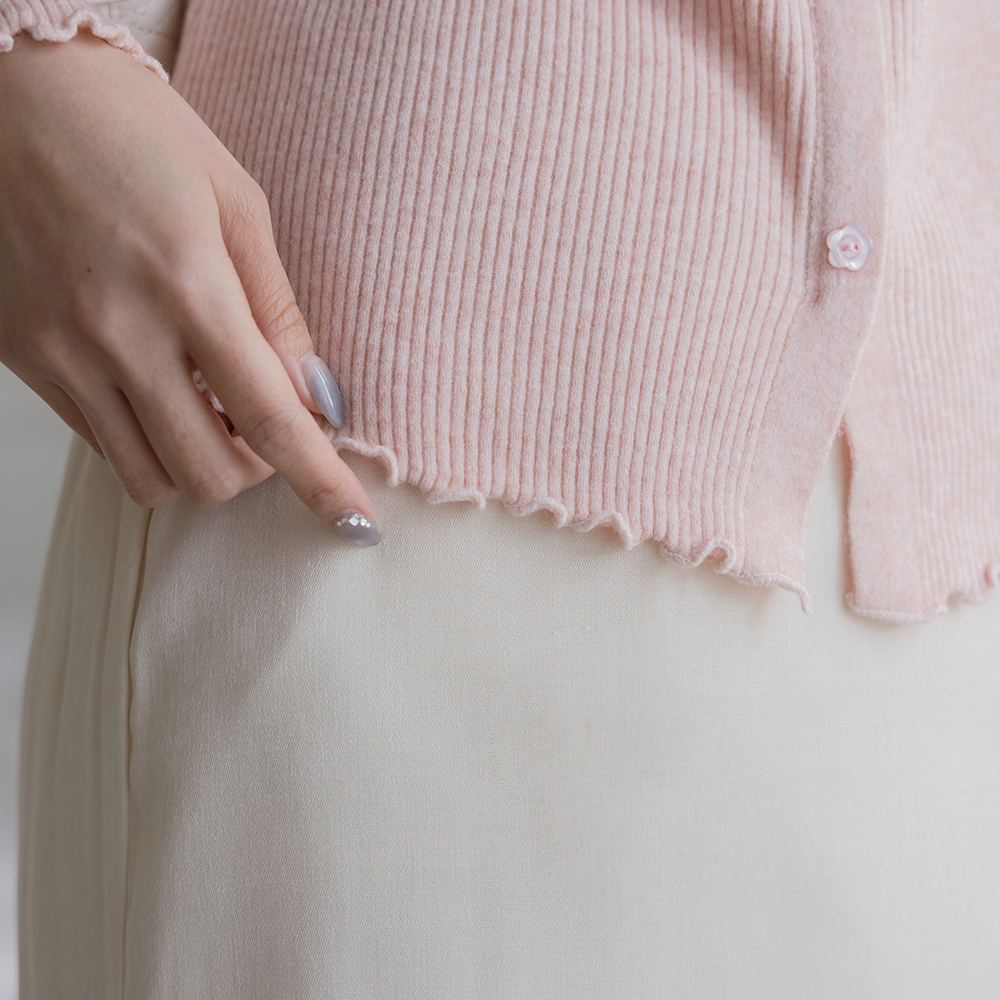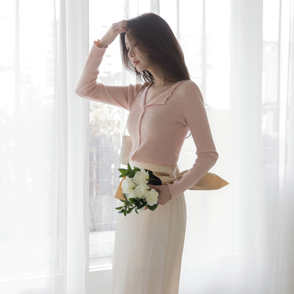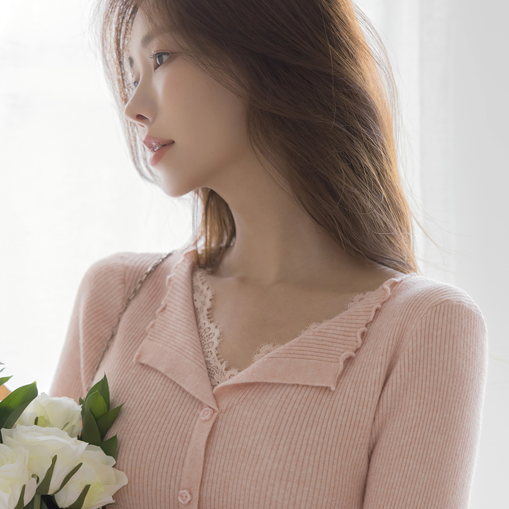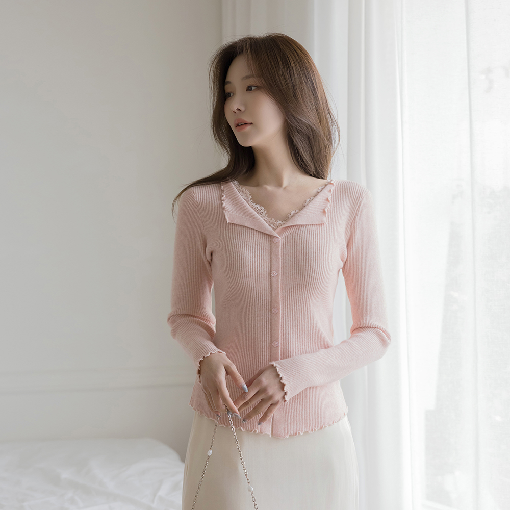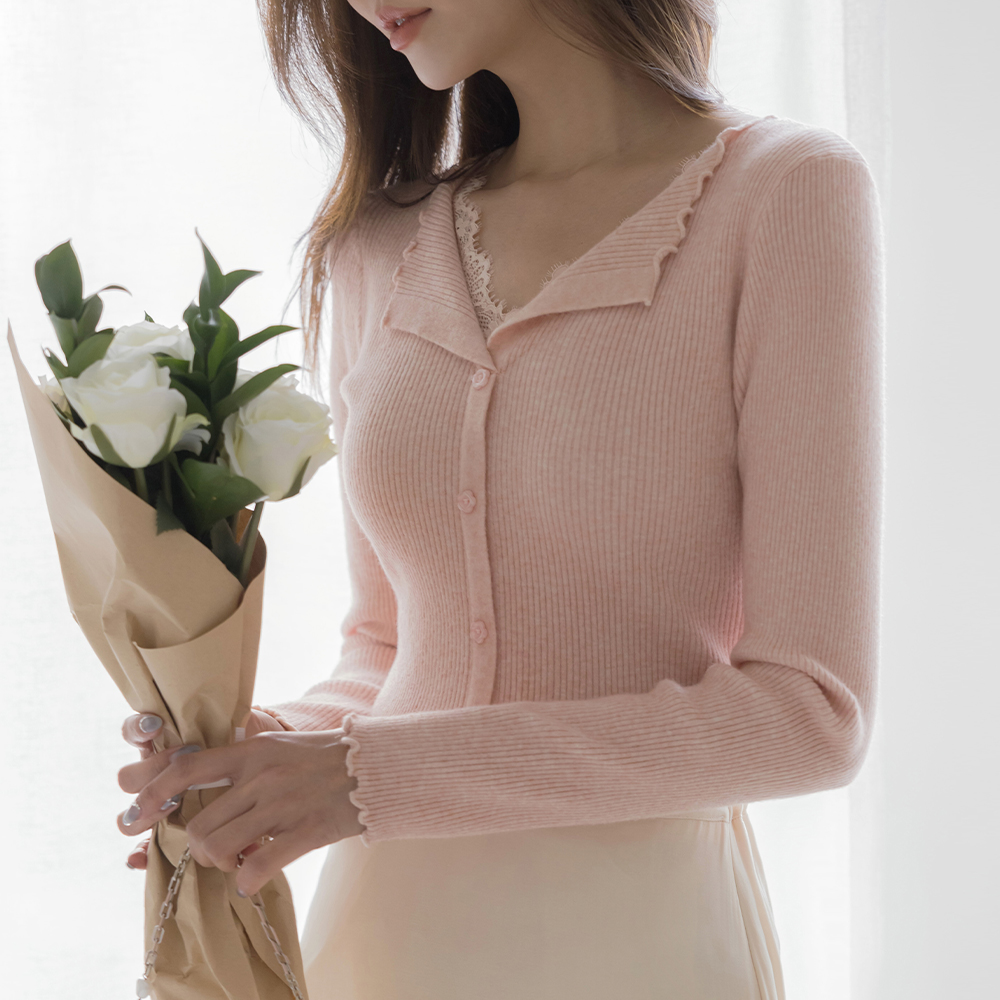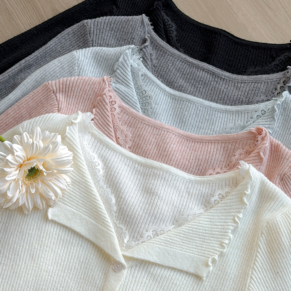 敞开式领口 蕾丝 条绒 花纹 扣子 针织衫