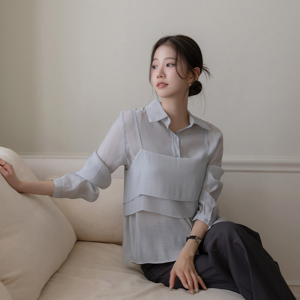 翻领 罩衫&吊带 SET