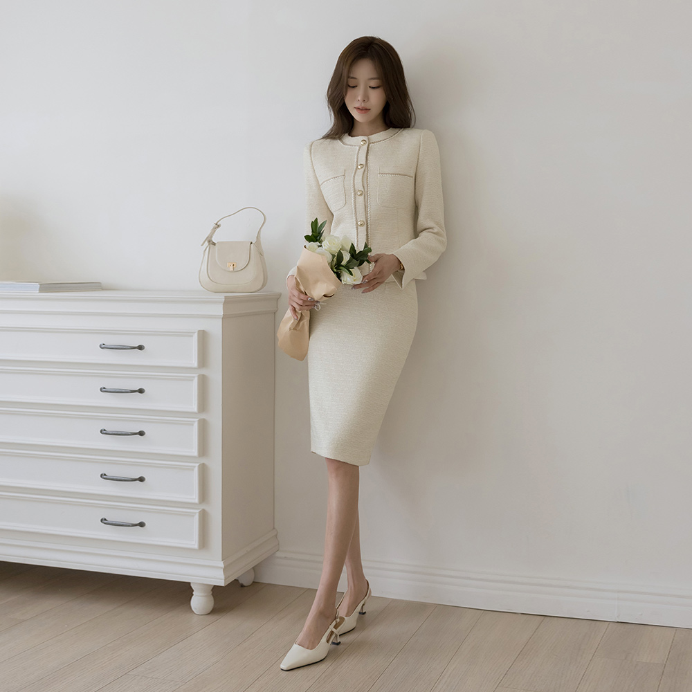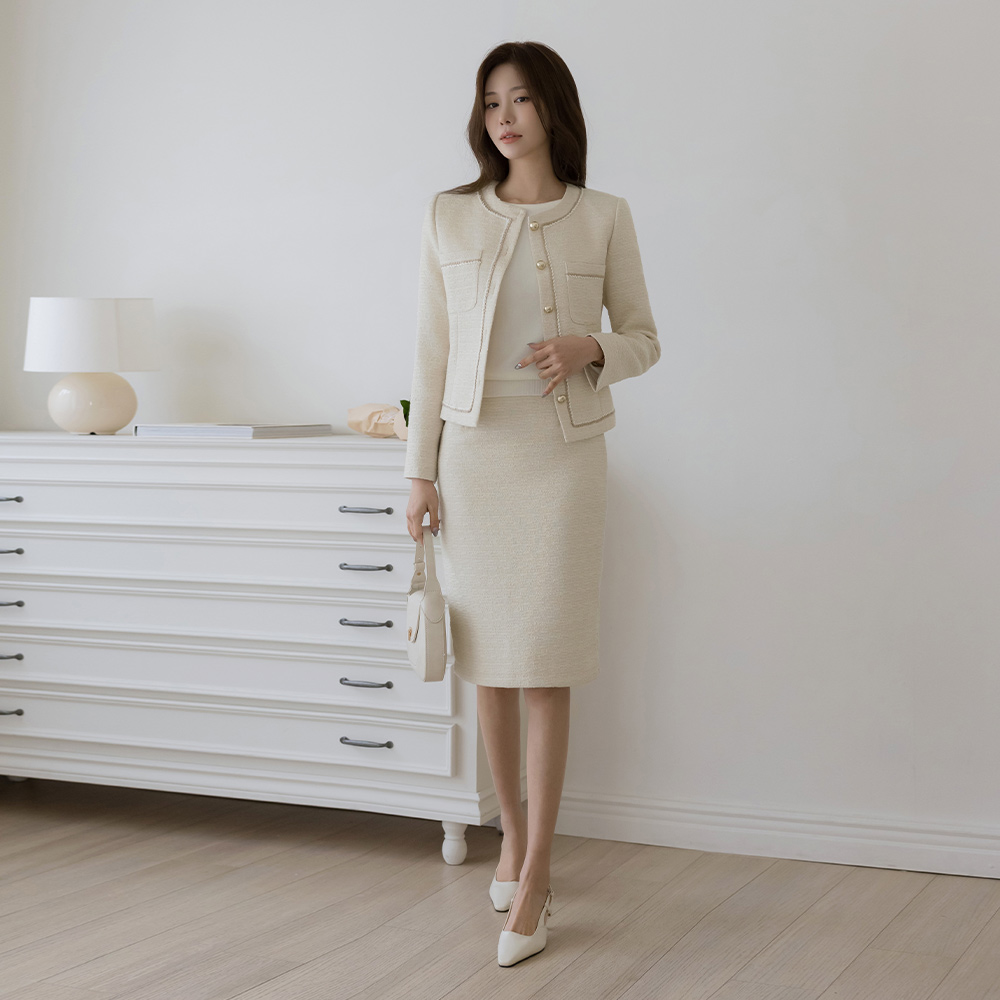 线条 配色 粗呢 Set-up 夹克