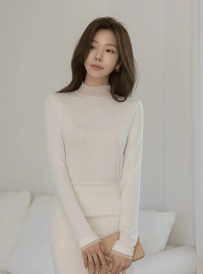 雪纺 配色 高领 弹力 T恤衫