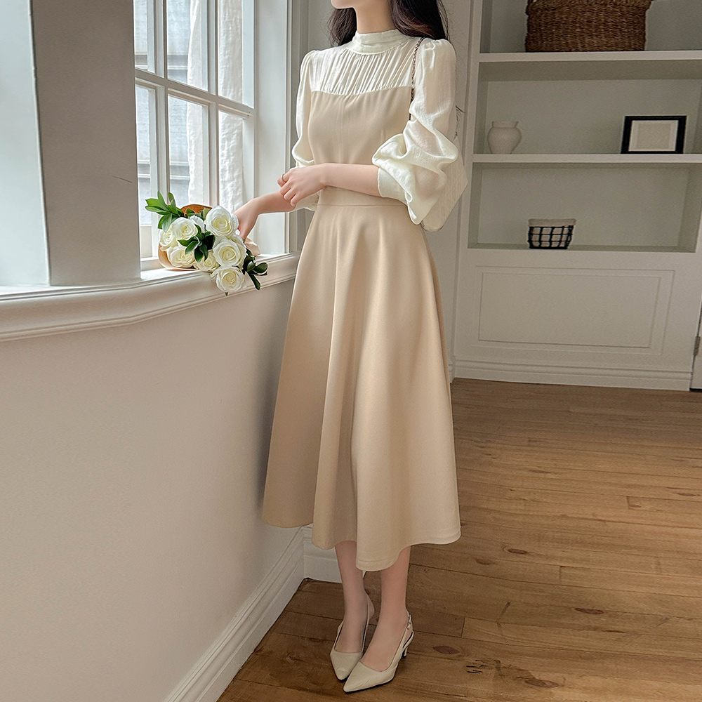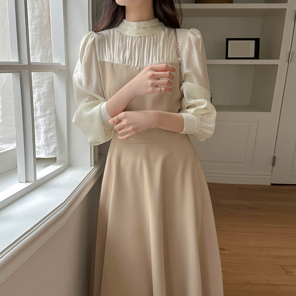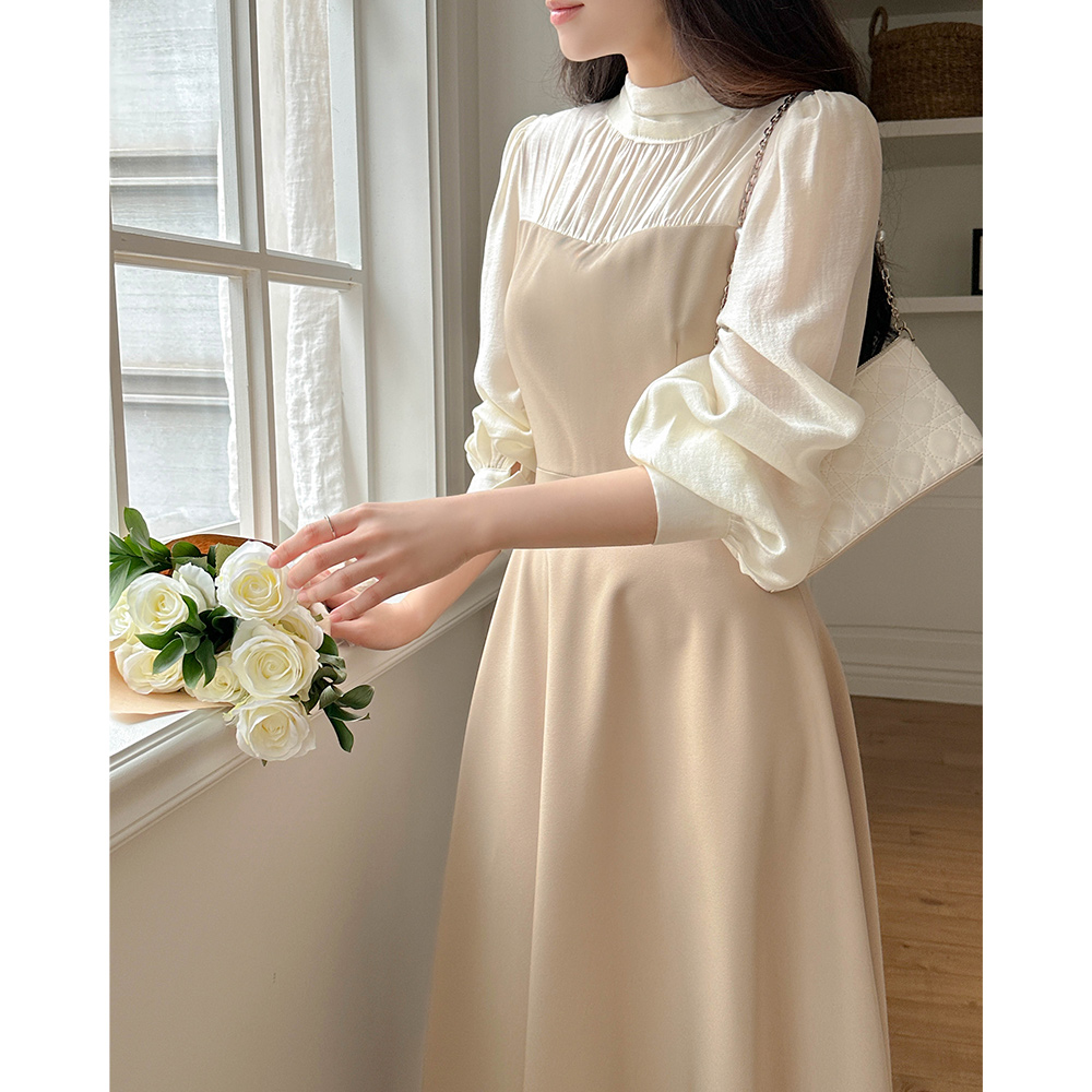 半高领 分层 A字型 连衣裙