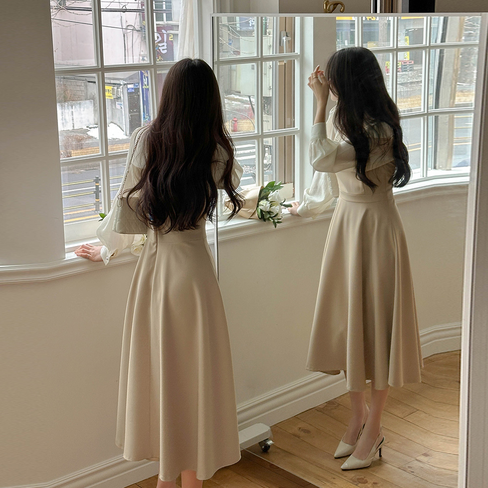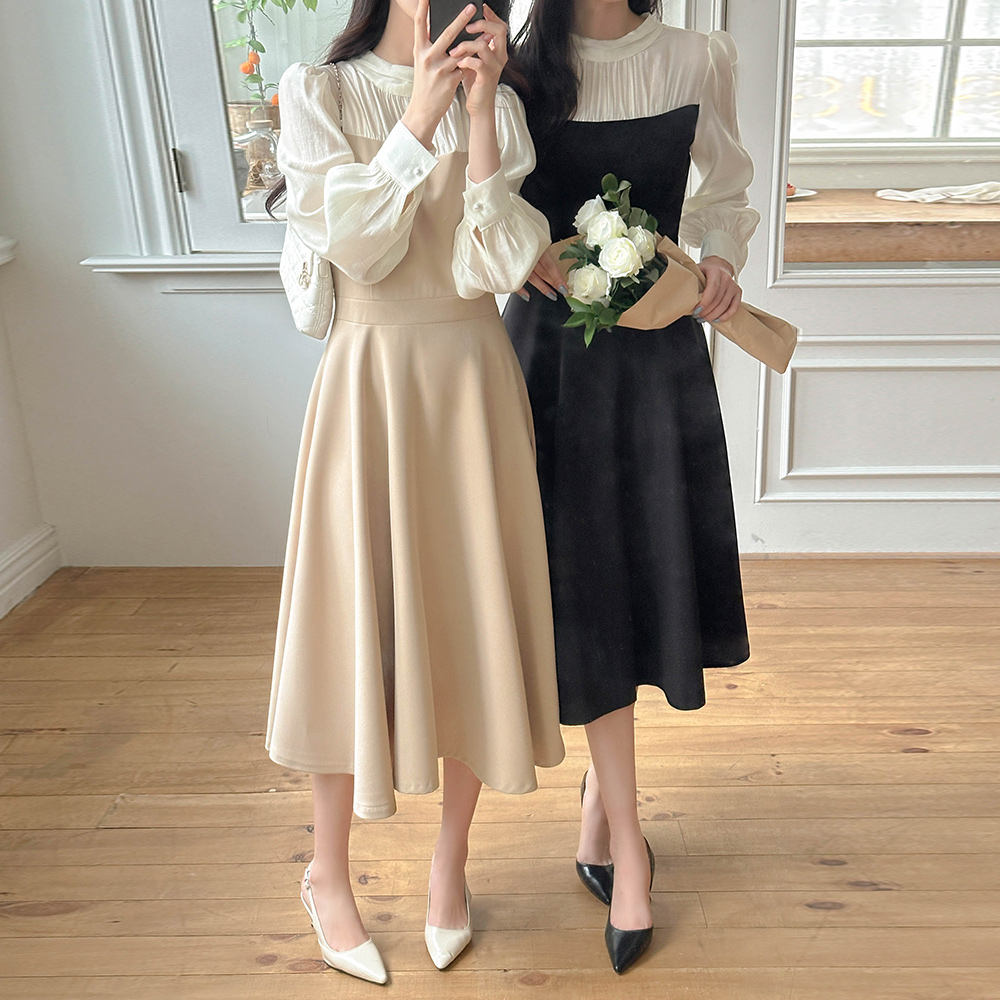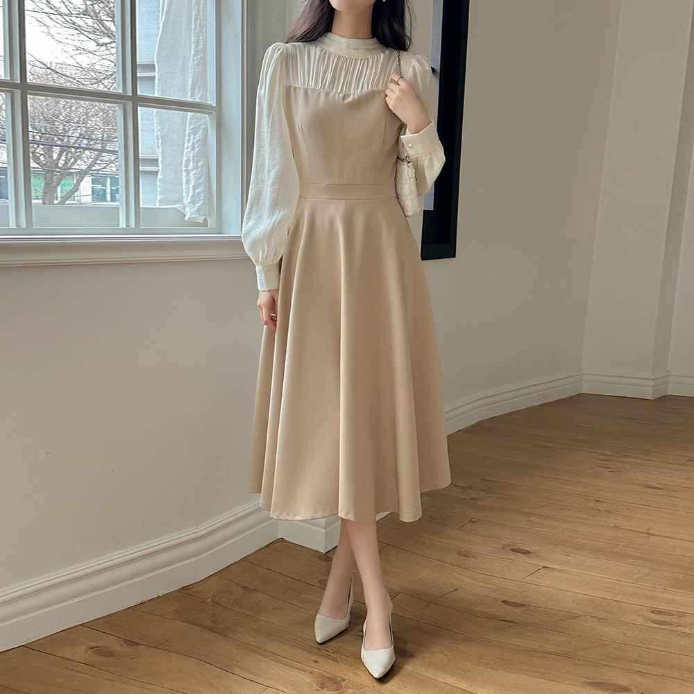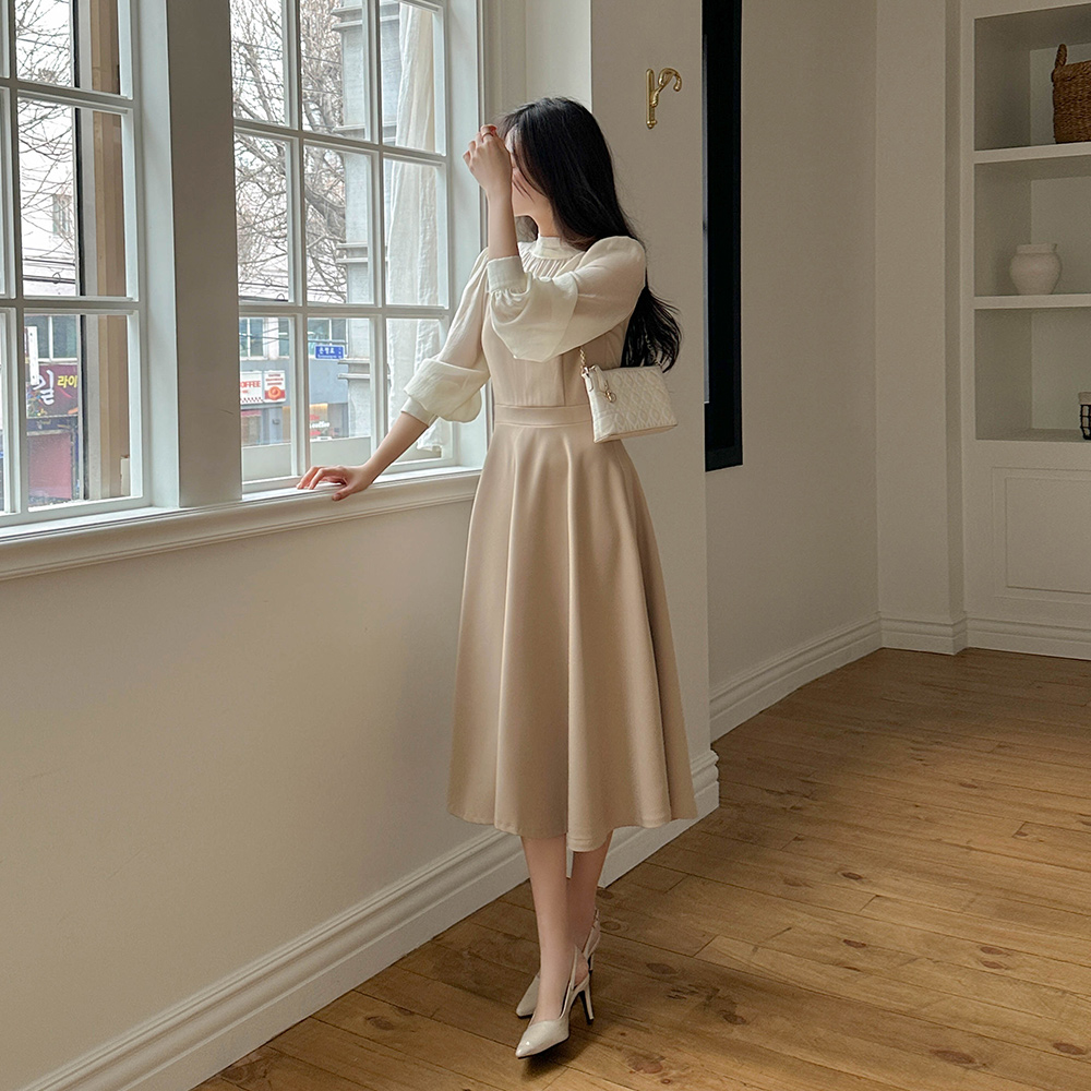半高领 分层 A字型 连衣裙