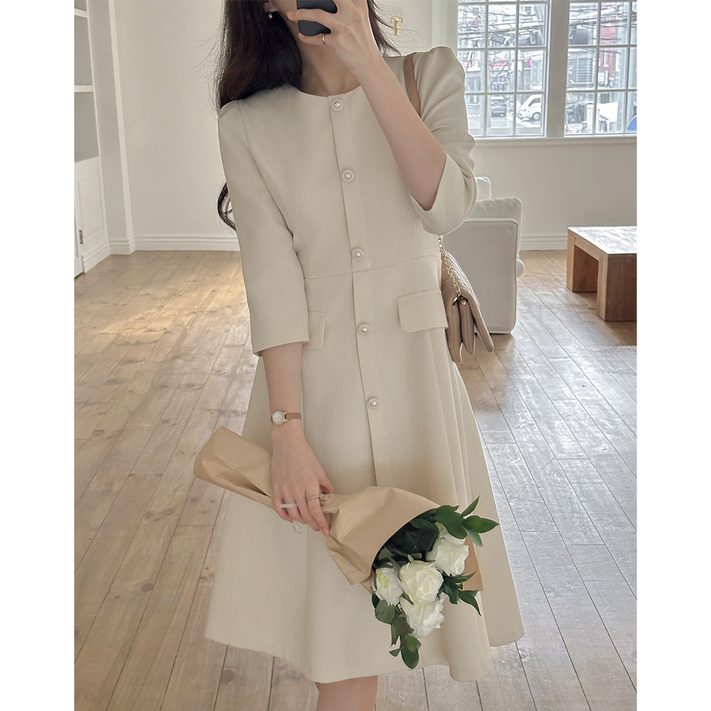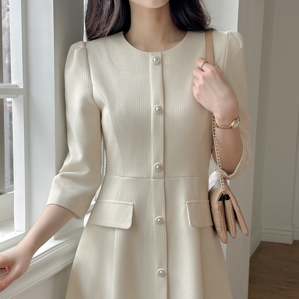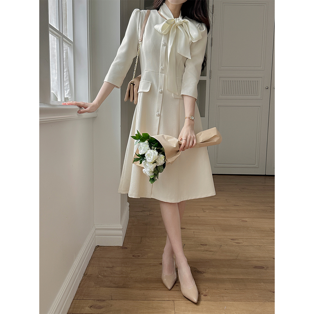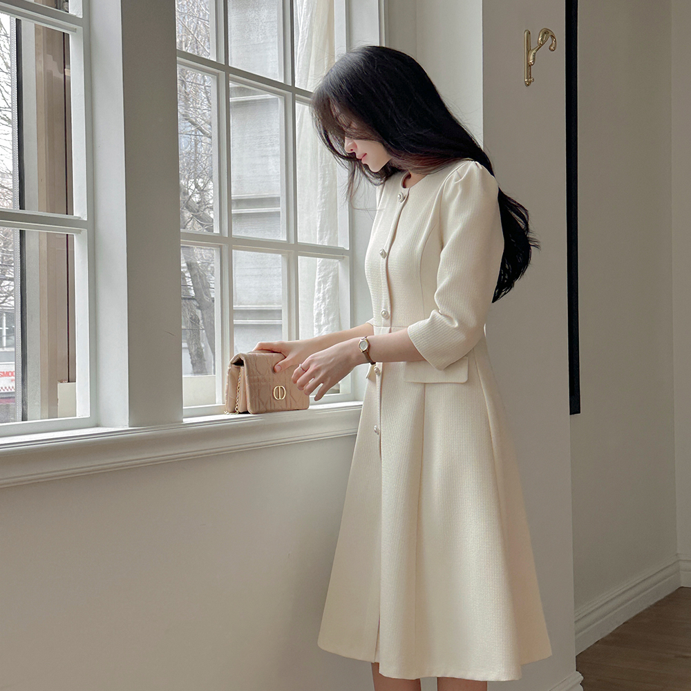 粗呢 7分 A字型 连衣裙(+围巾)