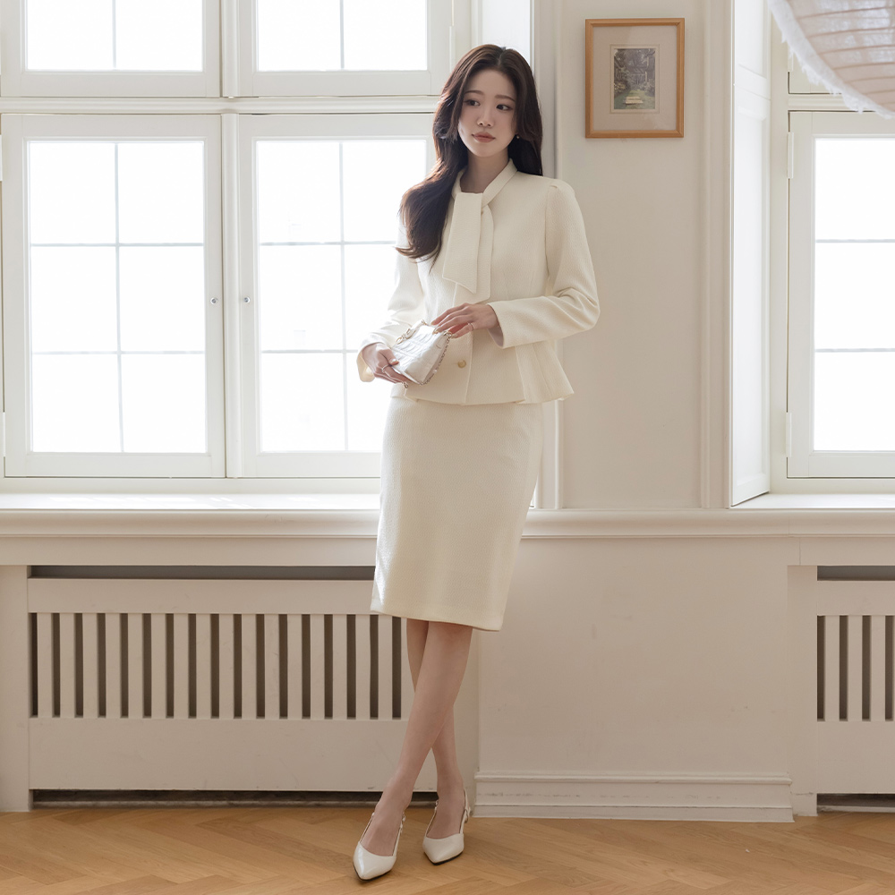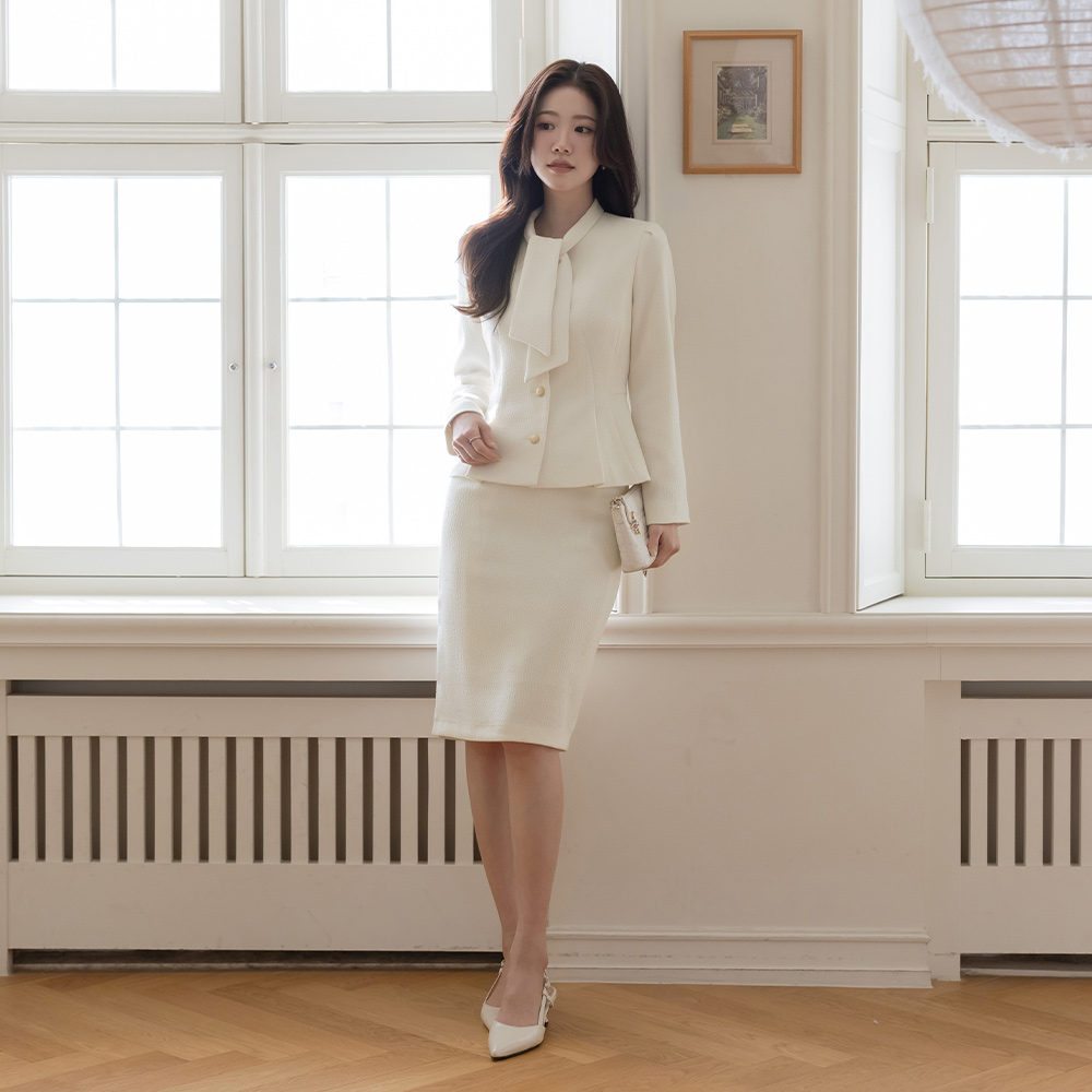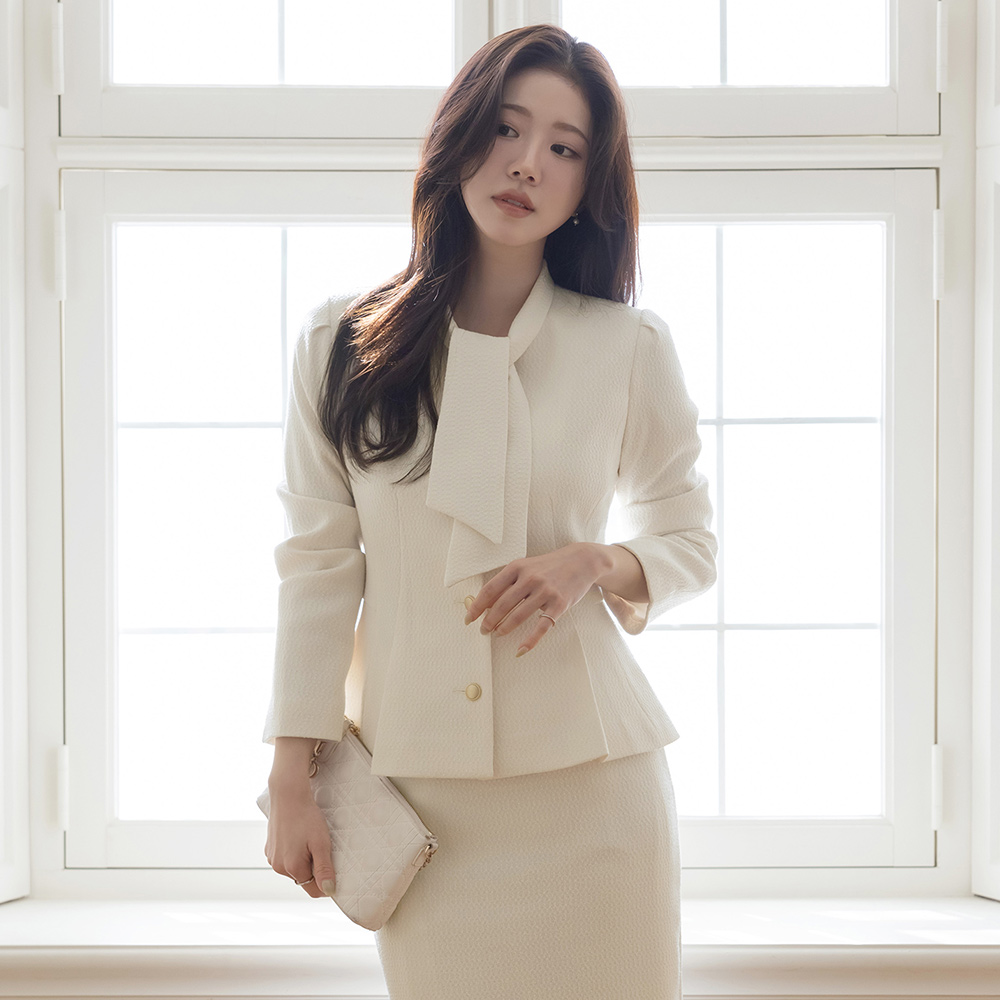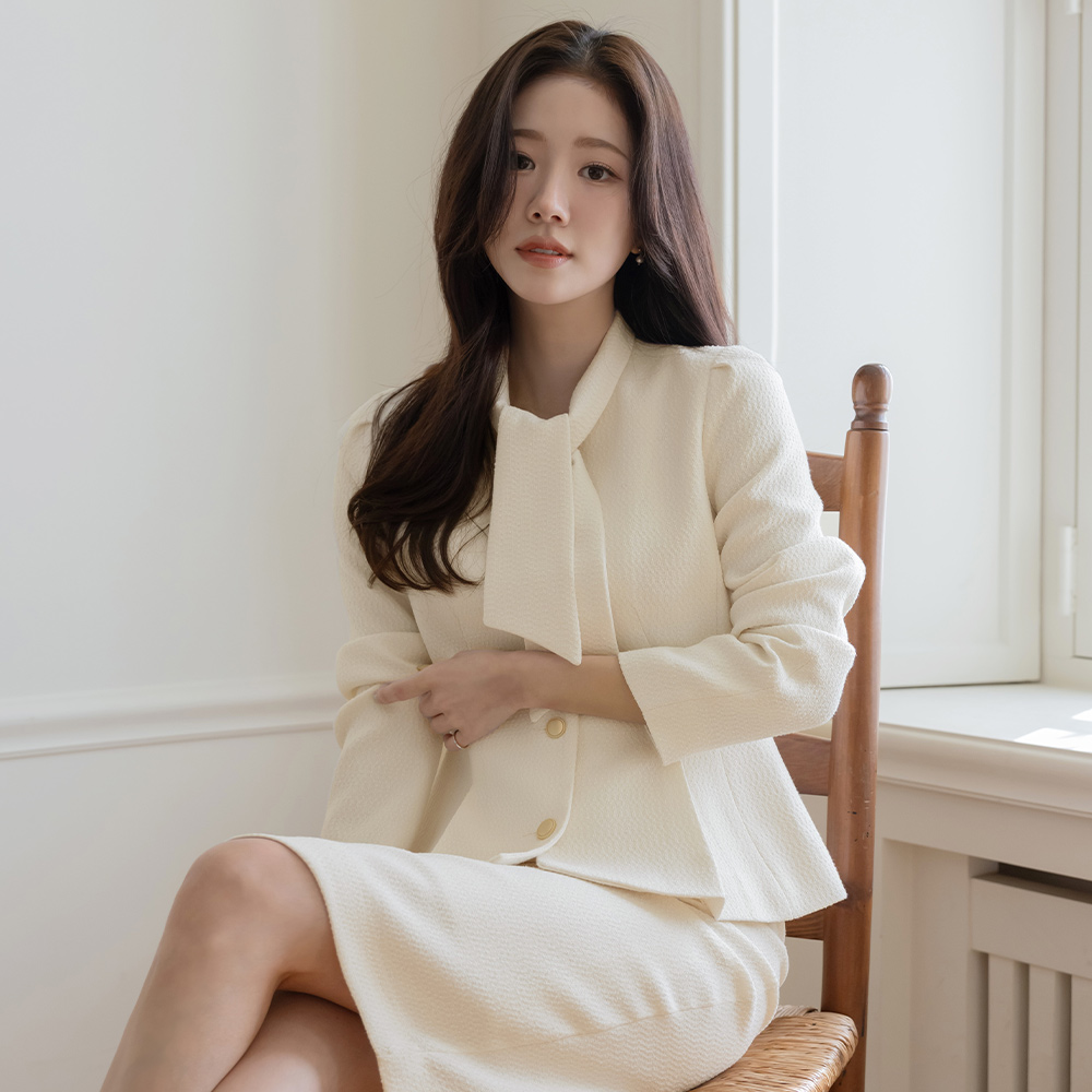 Pony 领带 荷叶边 粗呢 Set-up 夹克