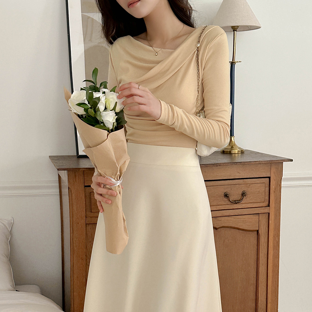 斜线 披盖 褶皱 弹力 T恤衫