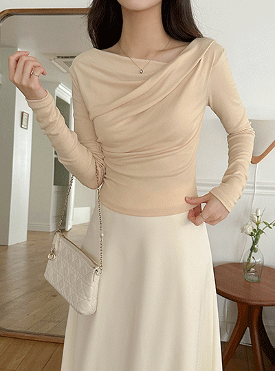 斜线 披盖 褶皱 弹力 T恤衫