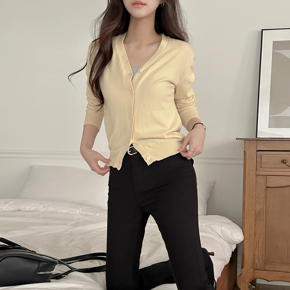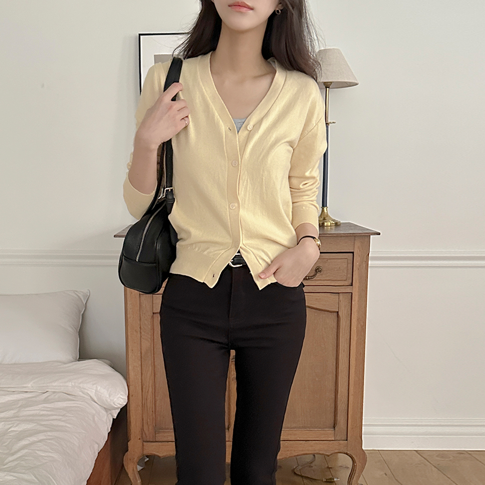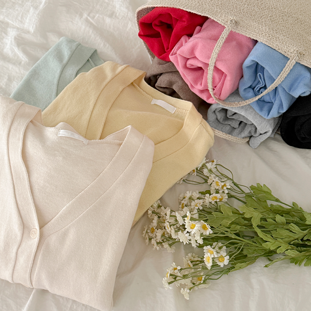 颜色 点缀 V领 针织衫 开衫