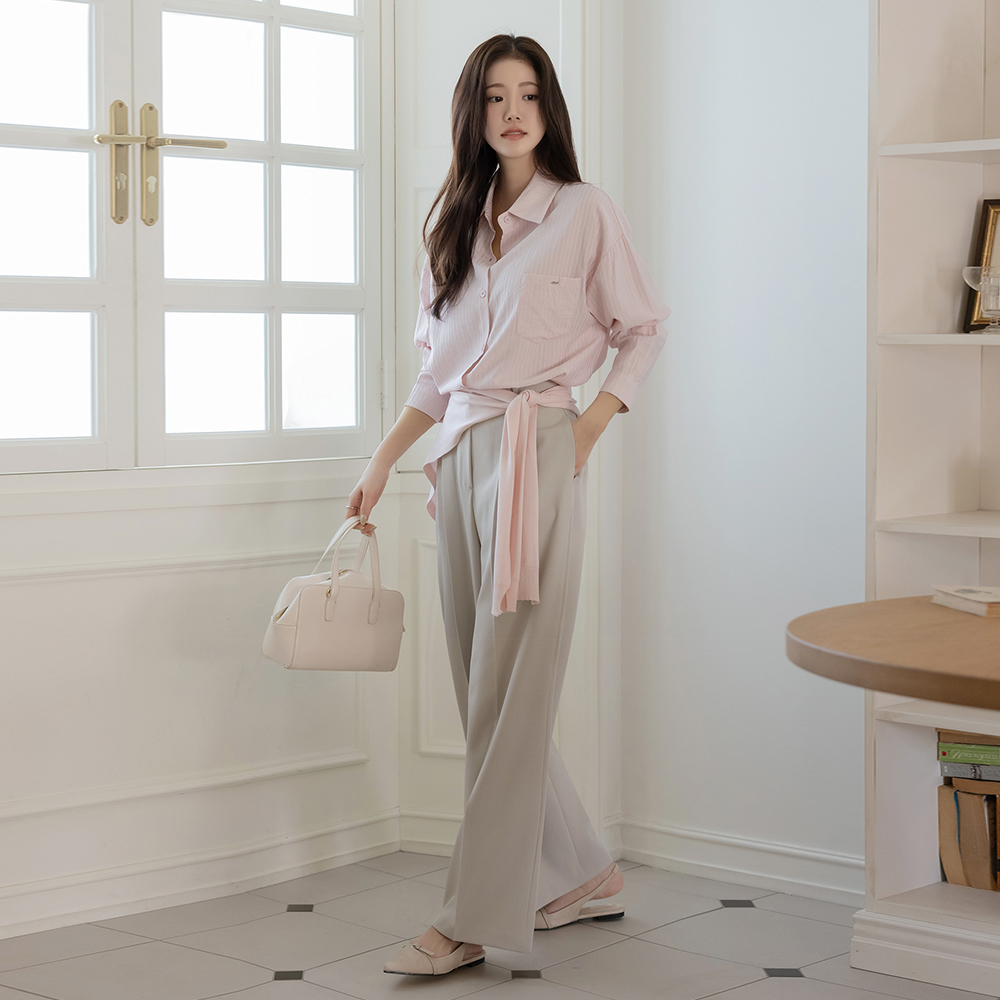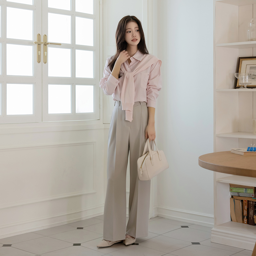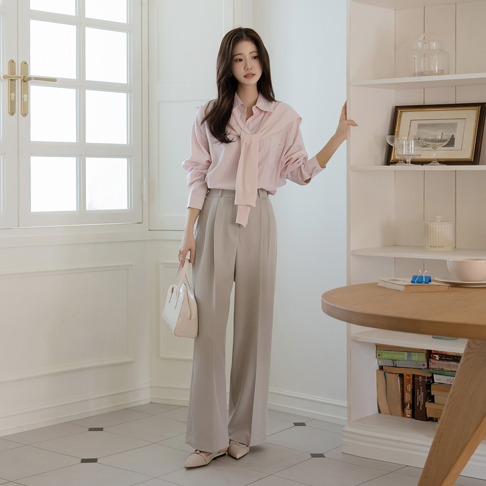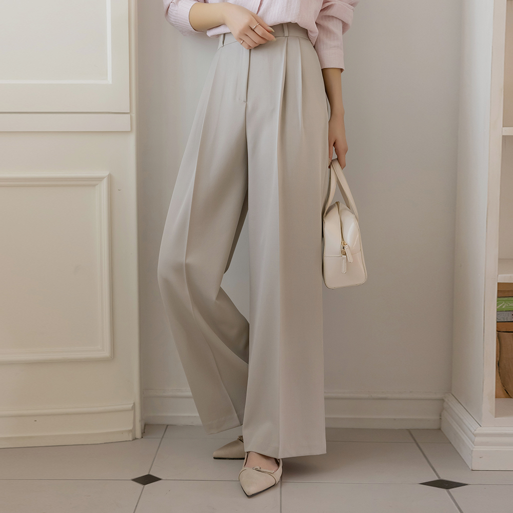 摩登 백비죠 宽绰 细褶 宽松长裤