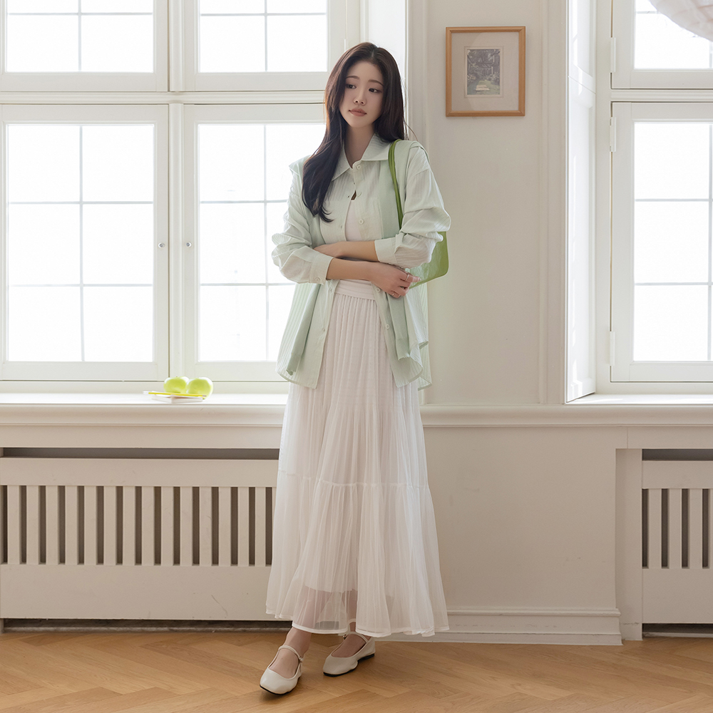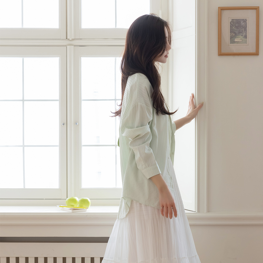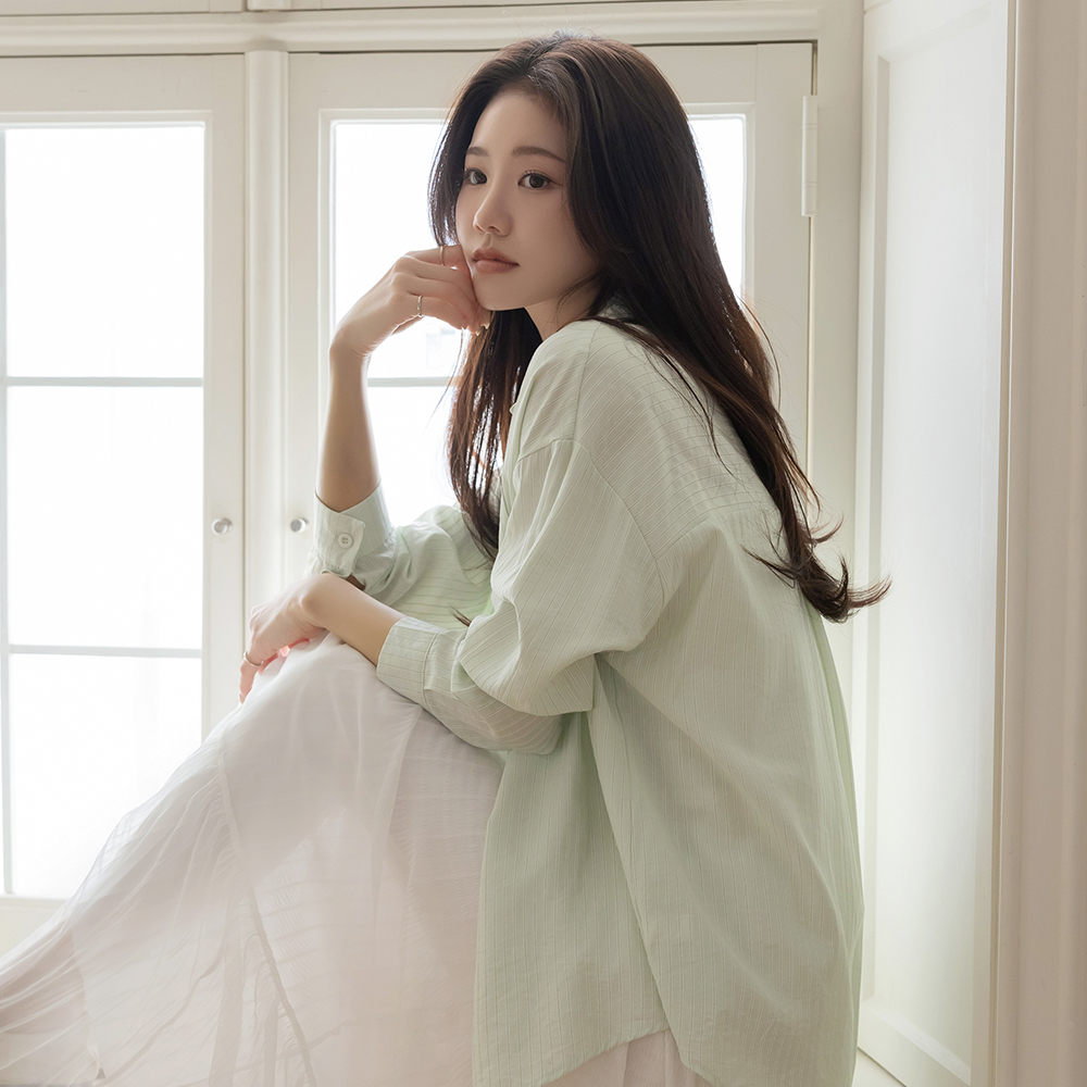 Blossom 条纹 宽松 衬衫(+披巾)