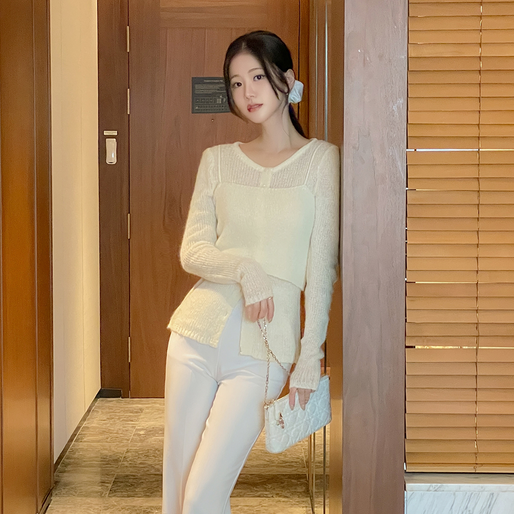 春季 侧纽 拉链 喇叭 宽松长裤
