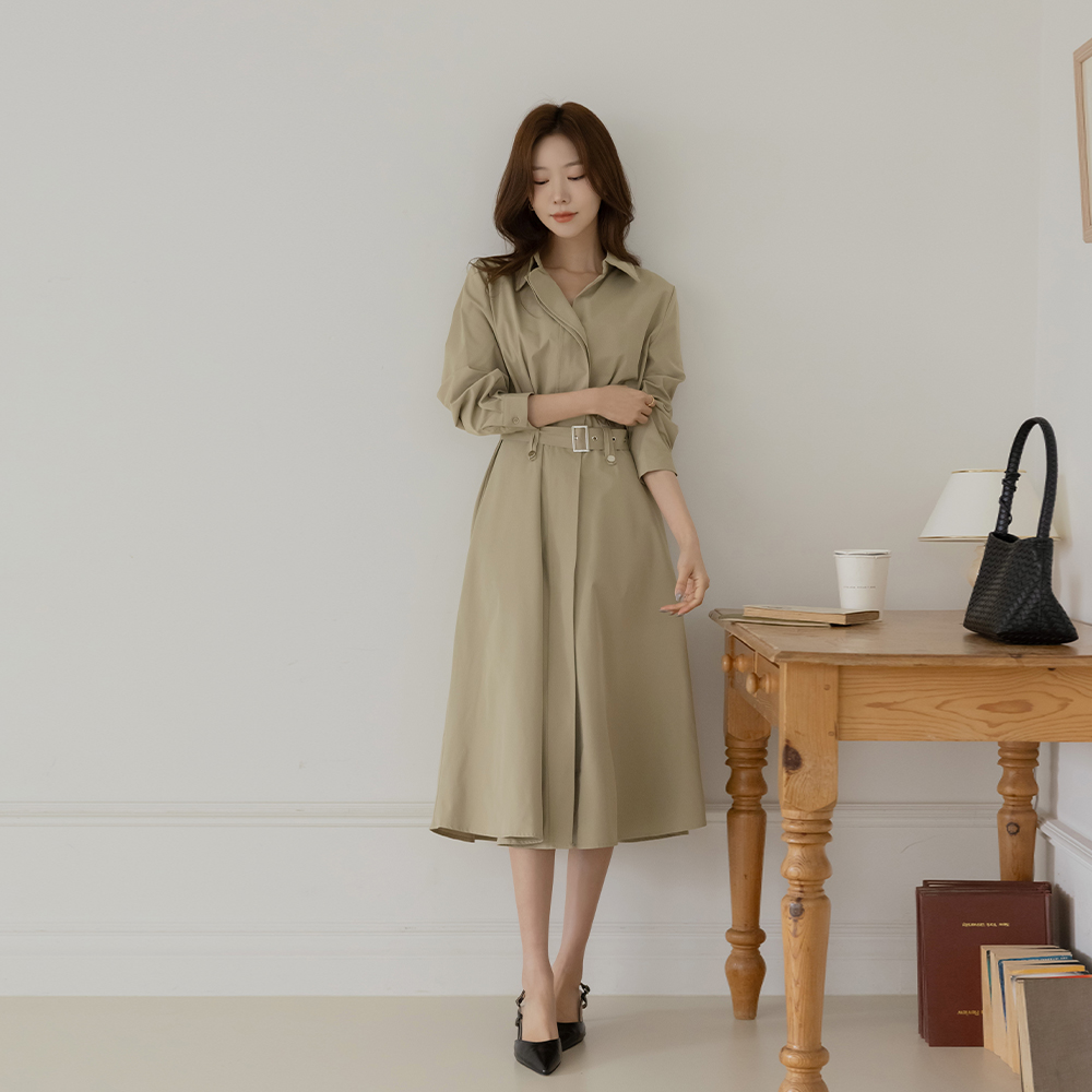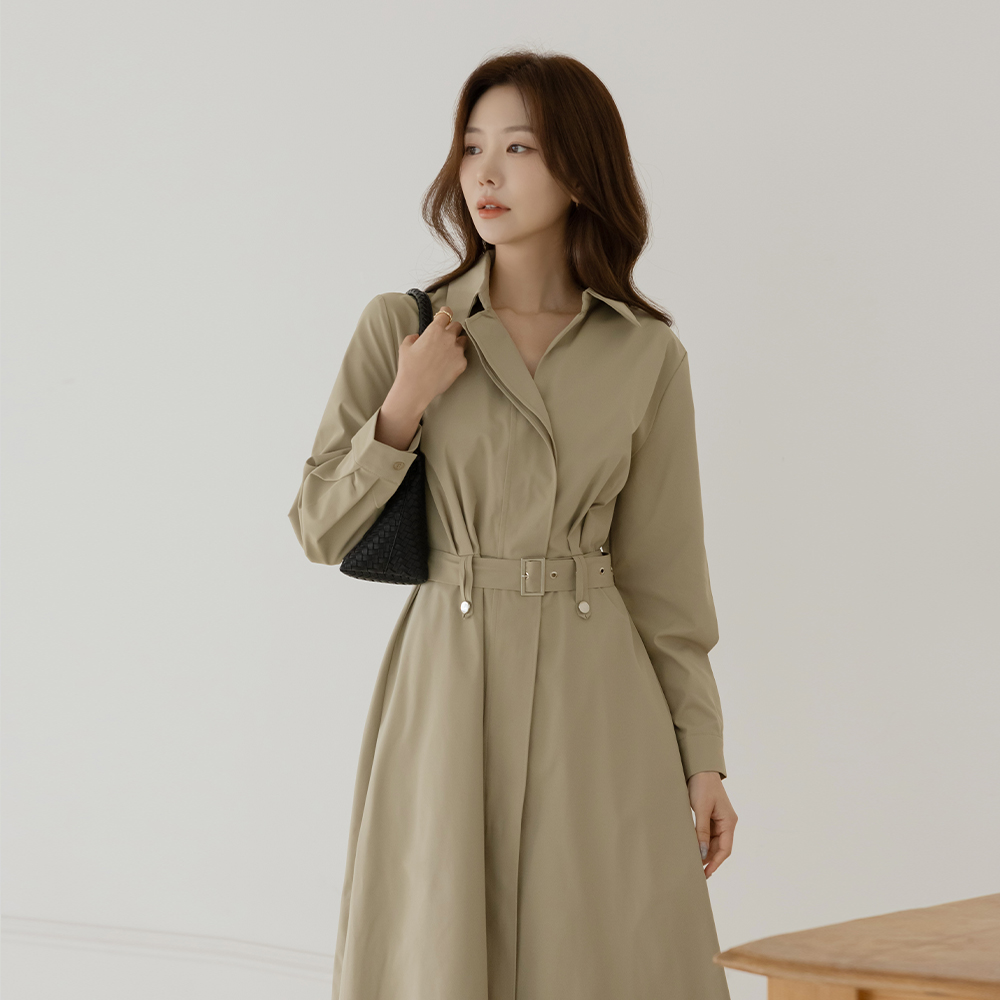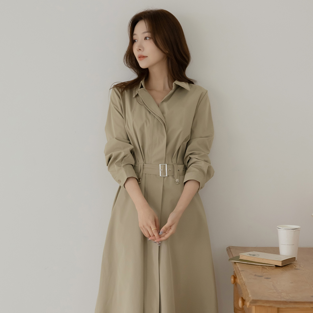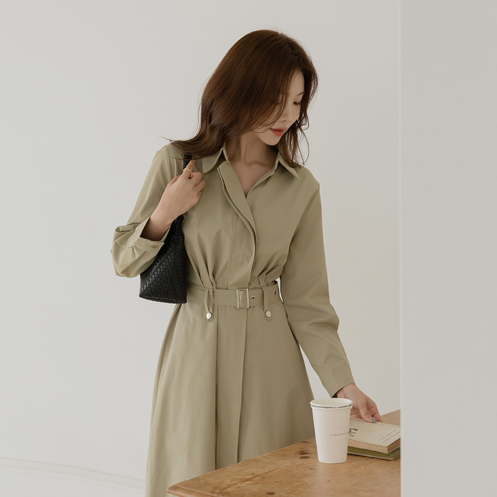 隐藏 风衣 风格 A字型 连衣裙(+腰带)