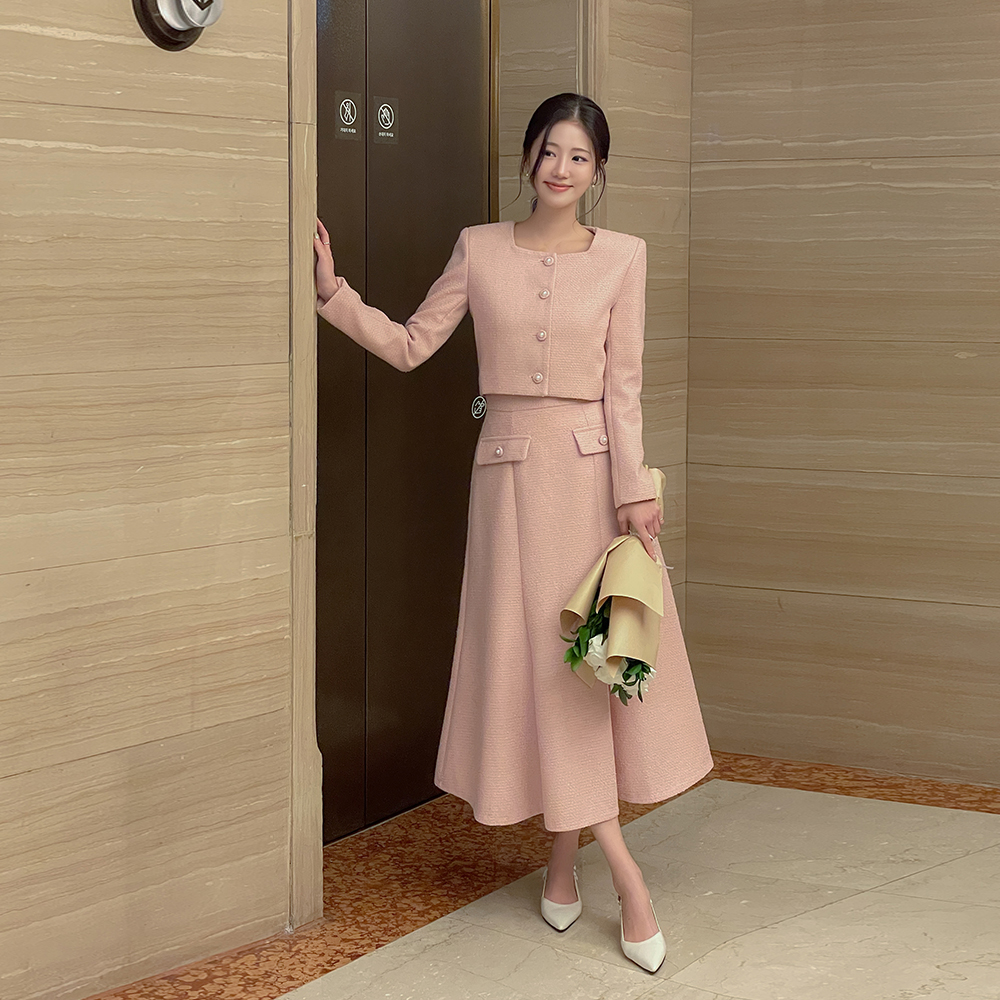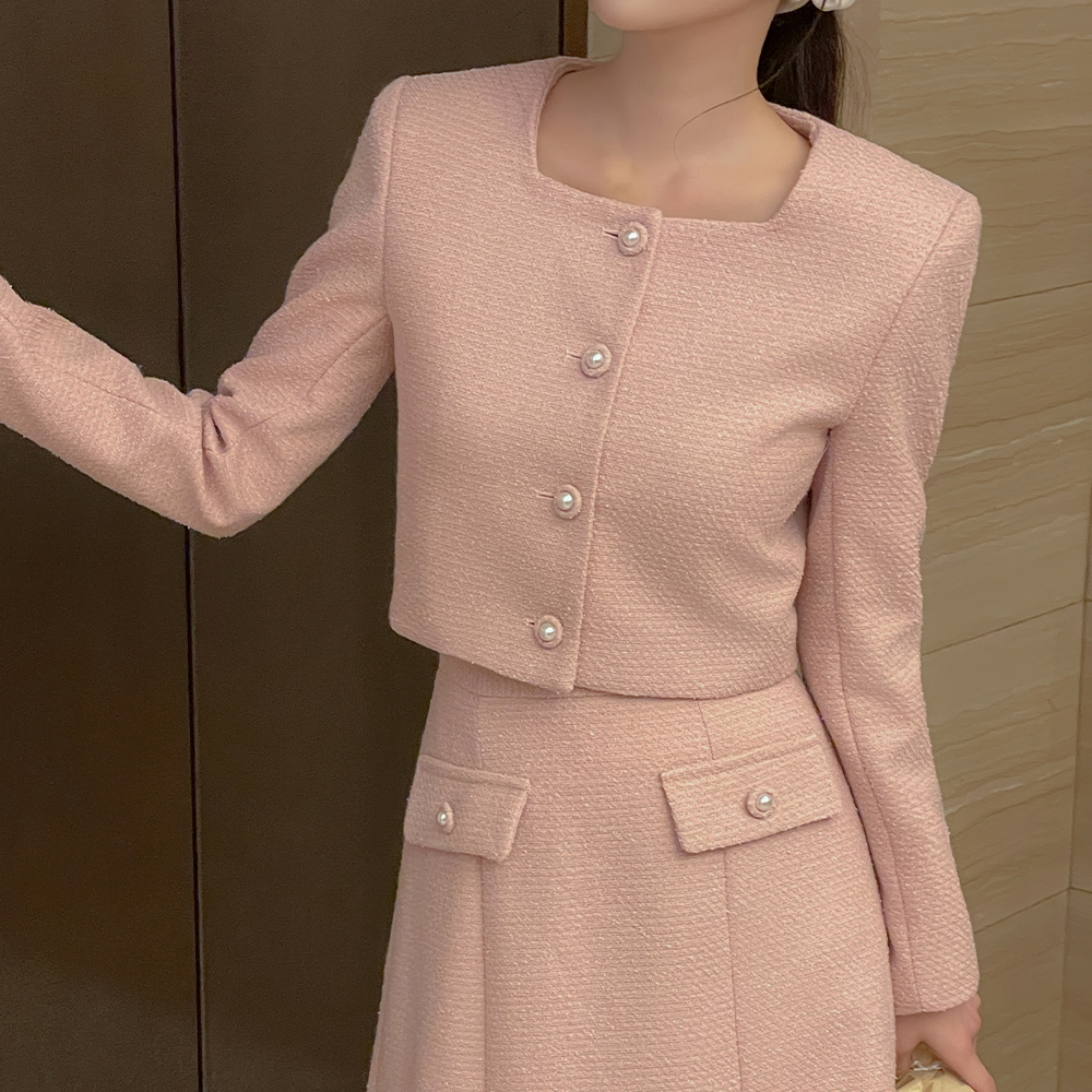 露西 珍珠 7分裤 粗呢 Set-up 夹克